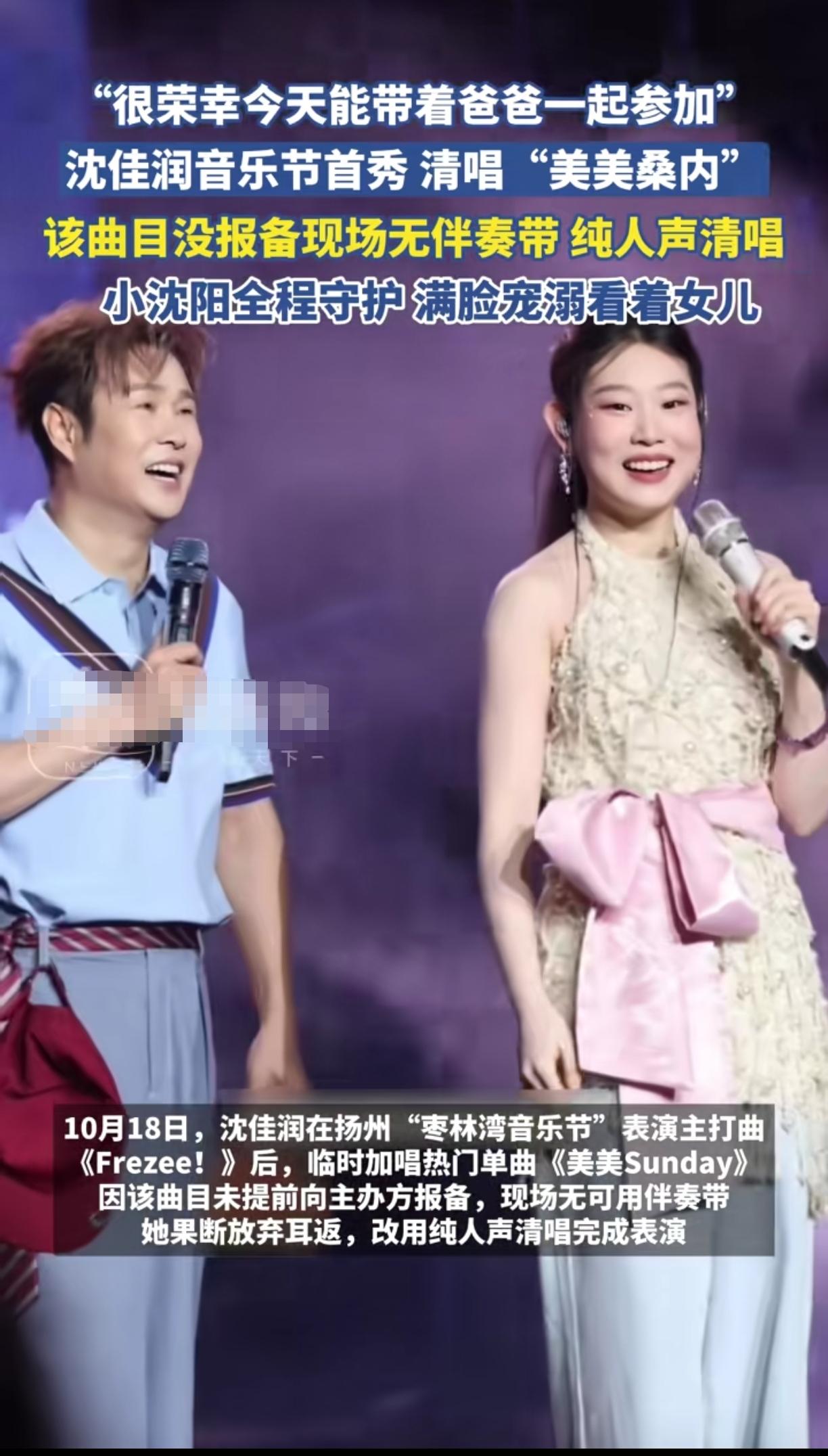 沈佳润这孩子出名以后模样都变了 小时候100%小沈阳 现在100%沈春阳 不得不说这孩子真是中了基因彩票 这次的扬州“枣林湾音乐节”,妆造做的是真美,漂亮,可爱,又不失这个年纪该有的天真,越看越喜欢 以后的音乐节就按这标准来安排 请明星就请沈佳润就行了 不仅不贵,他爹还会免费跟着来,一份工资两个明星,还临时免费加歌 沈佳润一首freeze怕大伙听不够,直接再加一首纯人声清唱“美美桑内”让现场观众尖叫声不断,直呼过瘾,业务能力杠杠的 果然女儿出道以后,小沈阳这地位不保啊,女儿更是在台上说“感谢举办方能让自己带爸爸一起来参加”,合计这小沈阳才是关系户呀! 沈佳润 沈佳润热舞 沈佳润变美 沈佳润歌曲 沈佳润女团感 沈佳润新歌 沈佳润原创歌曲
