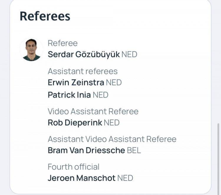 助理裁判:泽因斯特拉(荷兰)、因尼亚(荷兰)