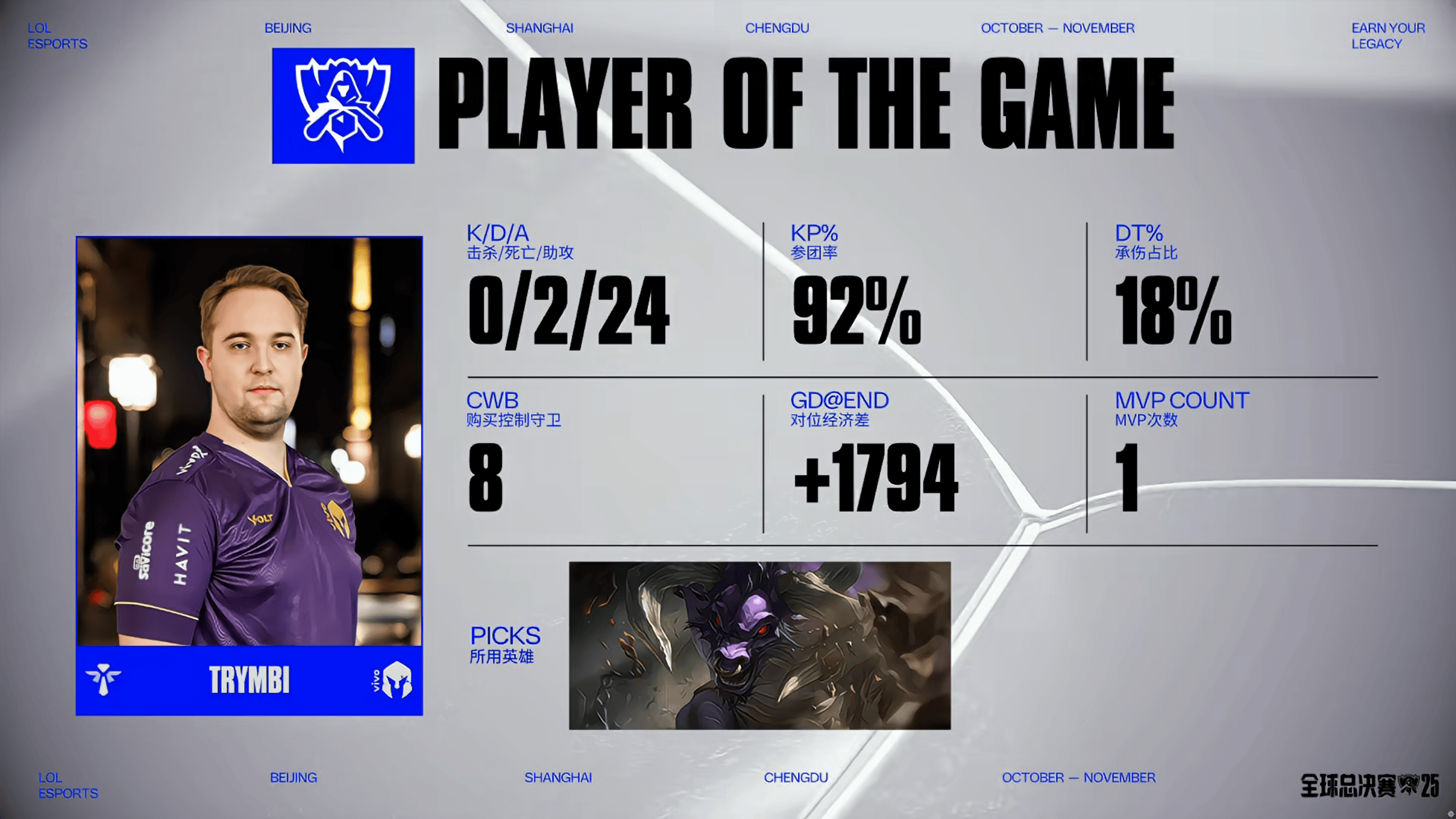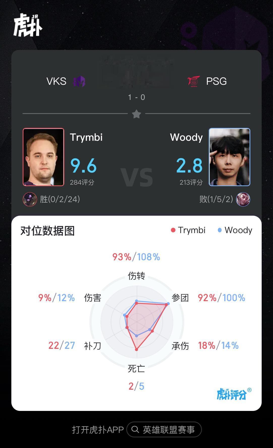 Trymbi牛头打出0/2/24战绩,拿下VKS对阵PSG第一局MVP