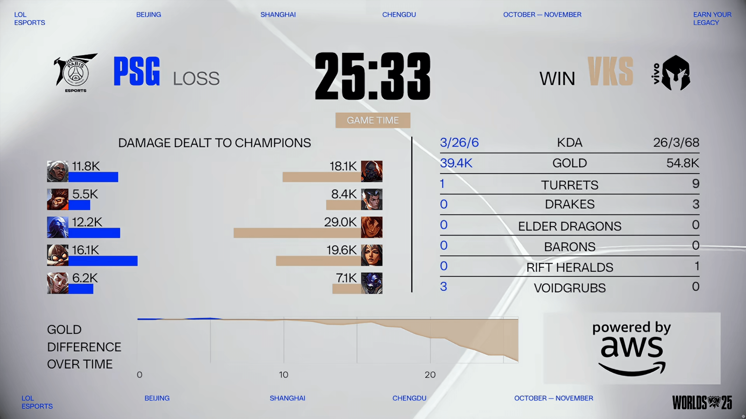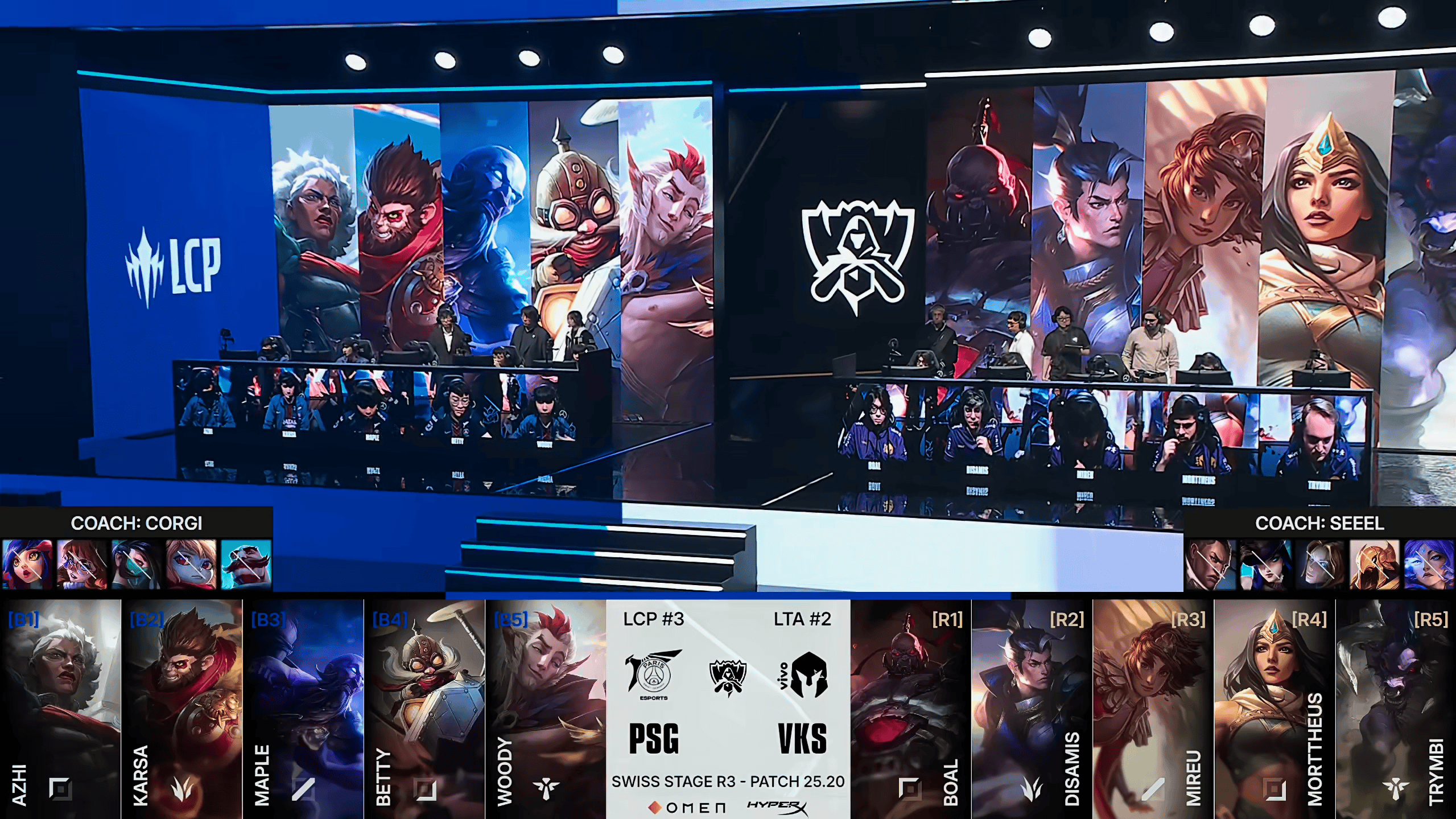 虎扑10月19日讯Game1:蓝色方PSG,红色方VKS