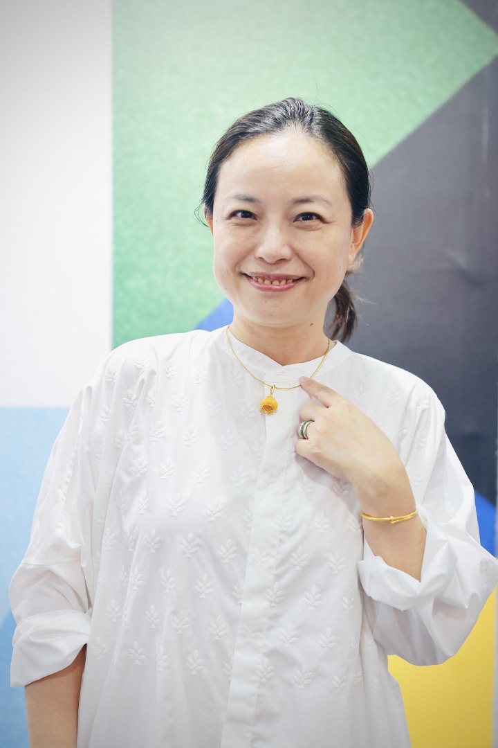 这是顾女士今年在杭州文博会下的第一单。两枚吊坠,一颗莹润透亮,一颗复古时尚,她穿着一身白裙子,恬淡的气质和琥珀非常相衬。