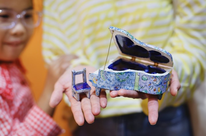 “同系列的作品都挺好看的,很有童心,还是马卡龙色系,国内不太能看到这种风格的作品。”张女士和女儿商量后,决定买它。“奇宝七岁了,已经学了两年钢琴,我们买这架钢琴,一个是觉得有缘,另一个也是希望可以激励她好好练琴。”