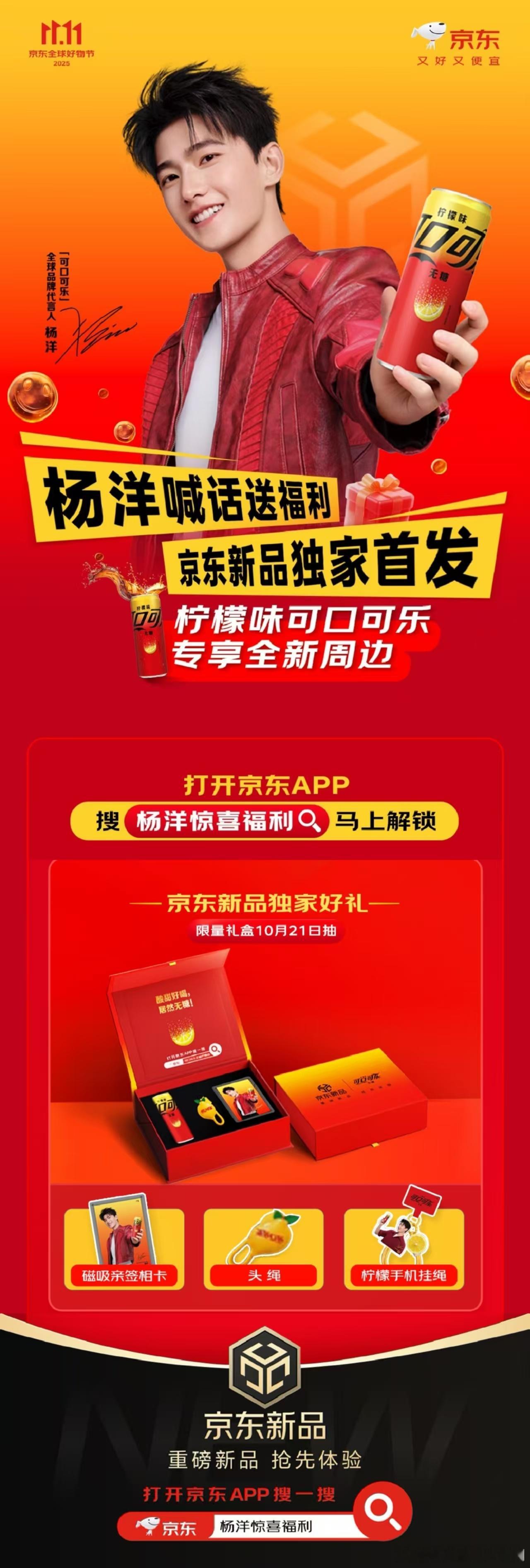 可口可乐充乐侠已上线10月20日可口可乐新品京东独 家首发,提前预 约直播后打开京东APP搜“杨洋惊喜福利”,解锁多重好礼,下 单还能拿限定冰箱贴。京东11.11 又好又便宜京东新品