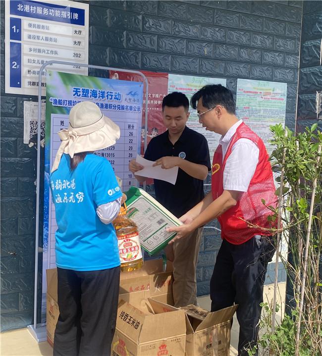 记者在活动现场看到,22名渔船船主及家属以“环保积分”兑换大米、食用油等生活物资。参与活动的渔民阿强说,“海洋垃圾对渔业的负面影响很大,出海时会力所能及将各种塑料瓶、垃圾袋从海里打捞上来,为环保事业贡献自己的一份力量。”