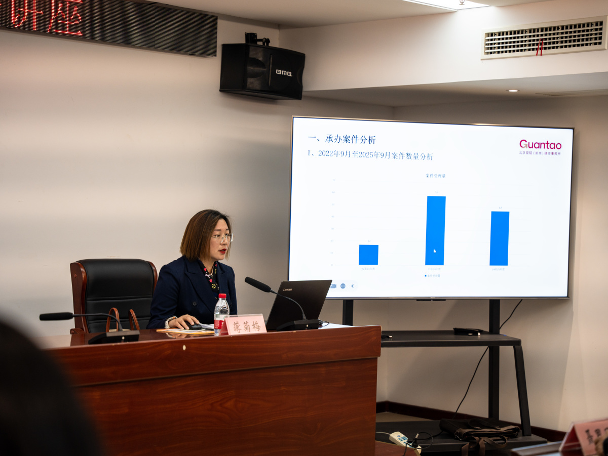 本次讲座邀请到了北京观韬(郑州)律师事务所薄菊梅律师担任主讲,薄律师拥有多年法律工作经验,具备扎实的法律知识和敏锐的洞察力。她围绕《民事诉讼法》、《建筑法》、《仲裁法》等法律法规,立足城市管理工作实际,结合日常业务中的典型案件,深入浅出地讲解了建设工程案件的实务要点。整场讲座内容翔实、重点突出,既有理论高度,又紧密联系实际,对提升干部职工的法律素养具有极强的指导意义。