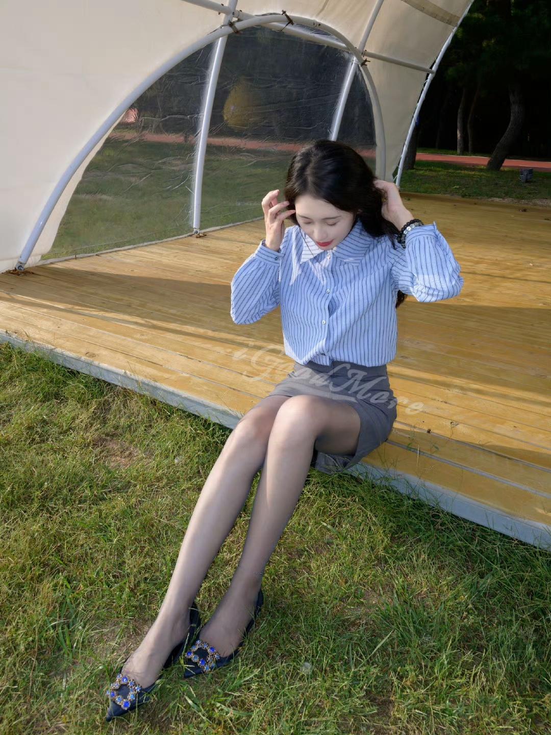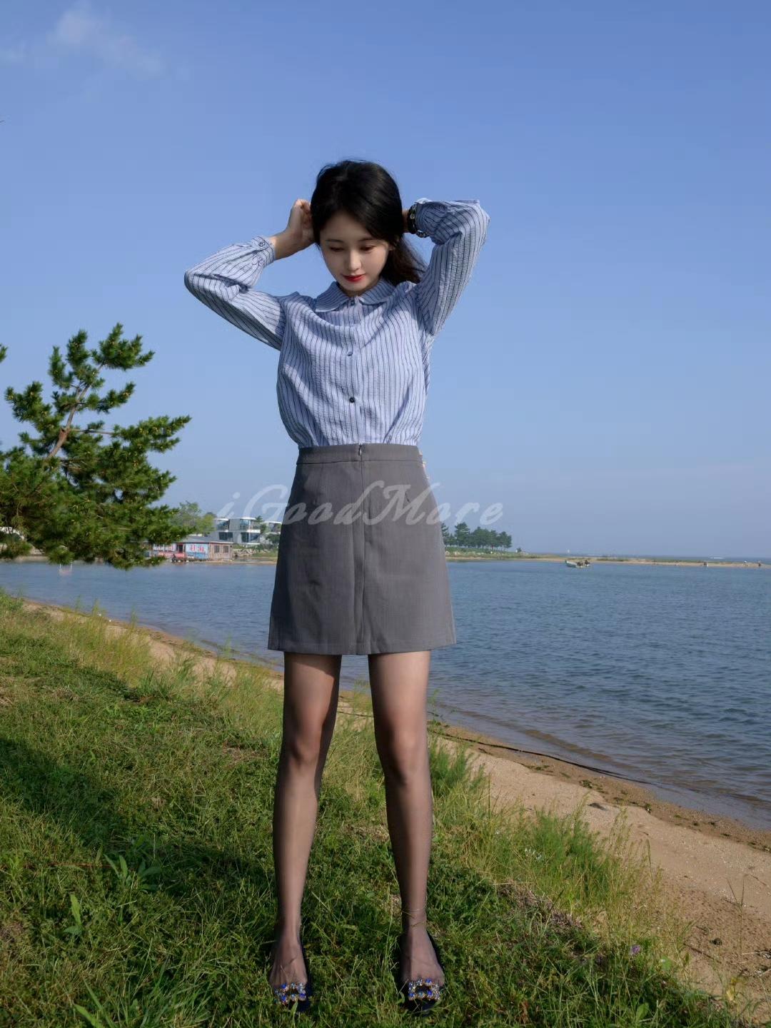 来海边溜达溜达,今儿天气挺好,心情超美! 穿的还是平常的工作服,搭配黑丝和平底鞋
