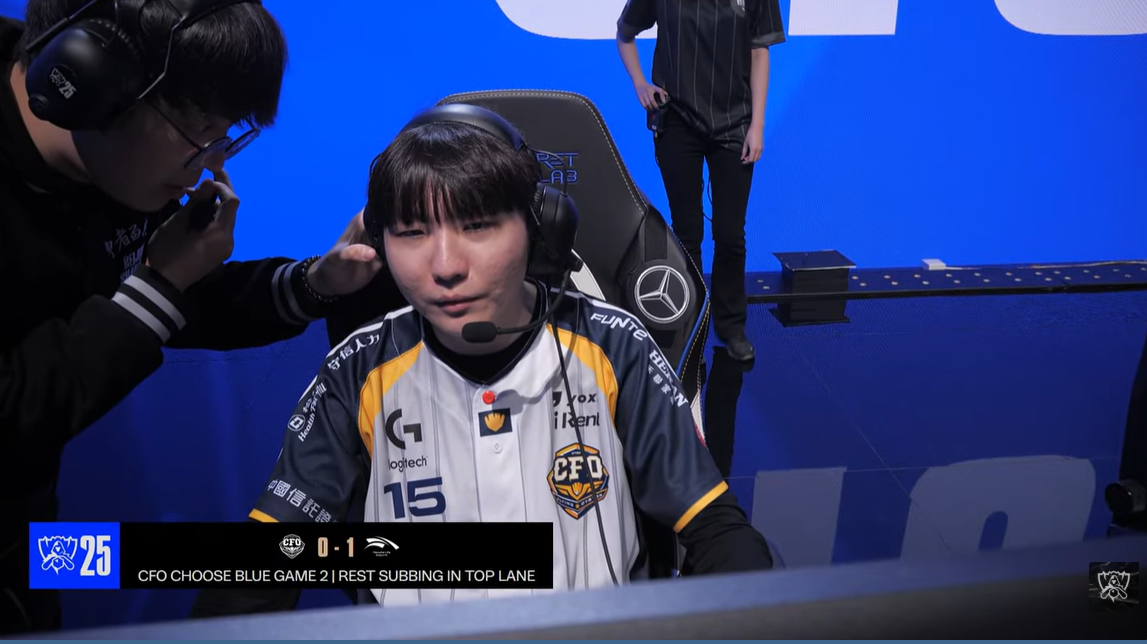 CFO对阵HLE的第二局,CFO更换上单由Driver换为Rest