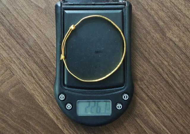 派出所民警到达现场后对手镯进行称重,重量为22.67克,对比2013年手镯购买发票上的重量,足足少了5.33克,立即将于某带回所内。