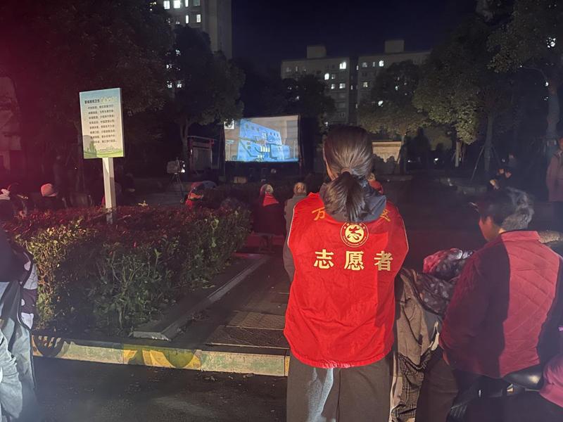 近日,蒙城县庄周街道万湖社区新时代文明实践站在小区小广场举办露天电影放映活动,鼓励居民走出家门,邻里相聚,共享美好时光。