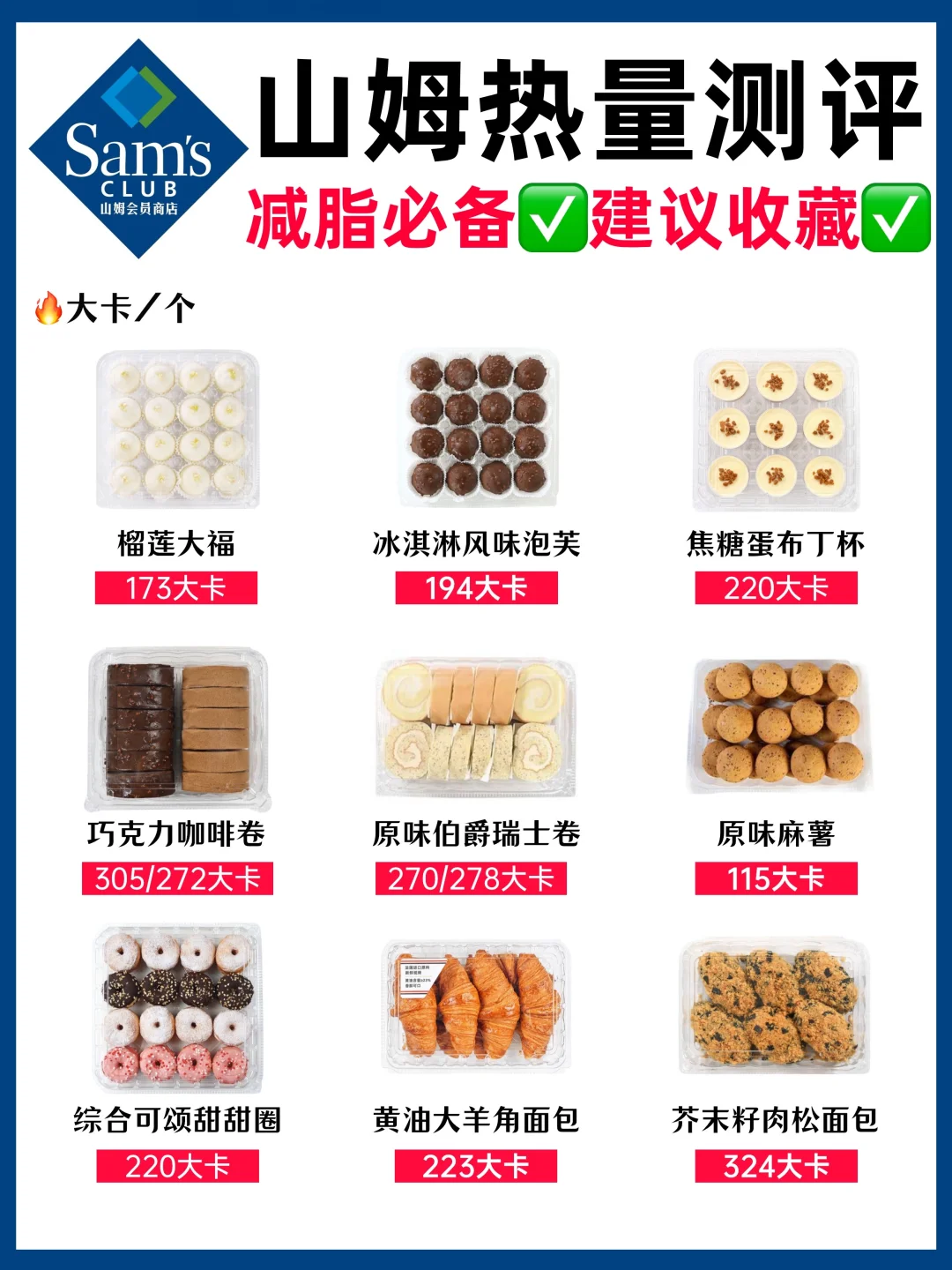👆全部山姆美食热量都给你们整理在图里了!