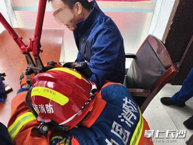 长沙晚报掌上长沙10月23日讯(通讯员阮鹏霖)“手指越来越肿,戒指卡得太紧了,麻烦你们帮帮我。”10月23日上午,一名男子焦急地走进天心区消防救援大队罗家坡消防救援站,其左手食指被一枚金属戒指紧紧卡住,指节处已出现明显红肿,紧急寻求消防员救助。