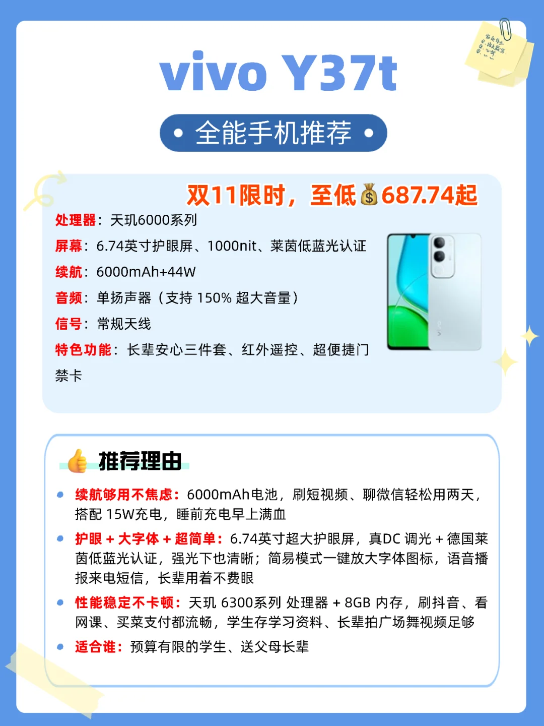 2️⃣vivo Y37t:低预算 & 送父母长辈闭眼入