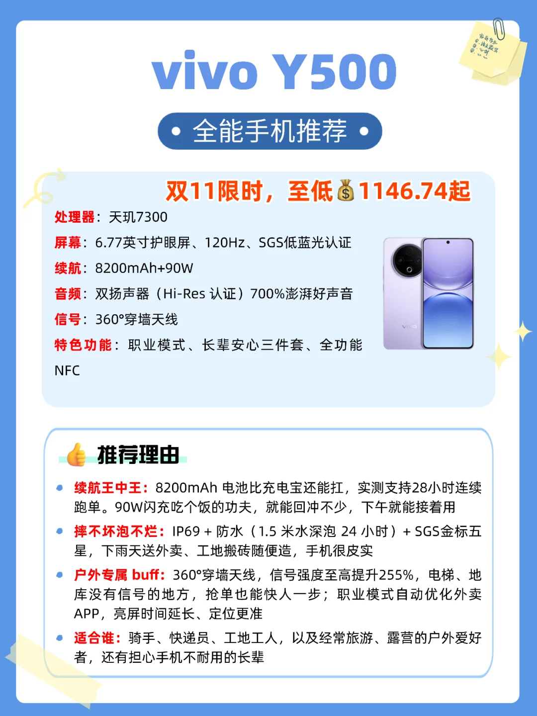 1️⃣vivo Y500:户外党 & 续航刚需首选