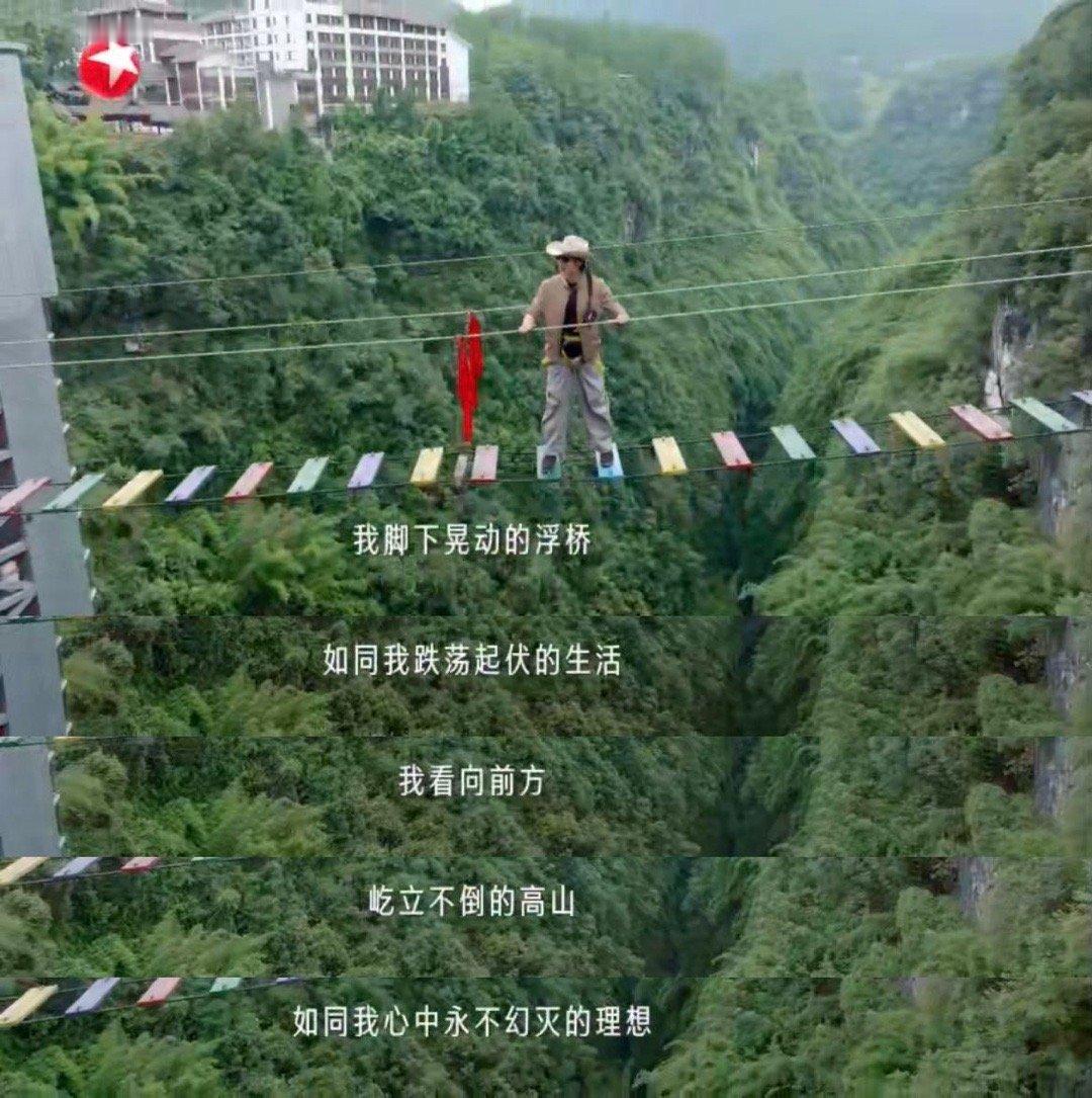 谁把于适的魔丸封印解开了 浮桥再晃也挡不住于适的魔丸能量!解封后他抱着吉他站在高空放声唱,把“脚下浮桥如生活,身前高山似梦想”喊得超有劲儿,完全不care高度的样子,热血到让人跟着沸腾!