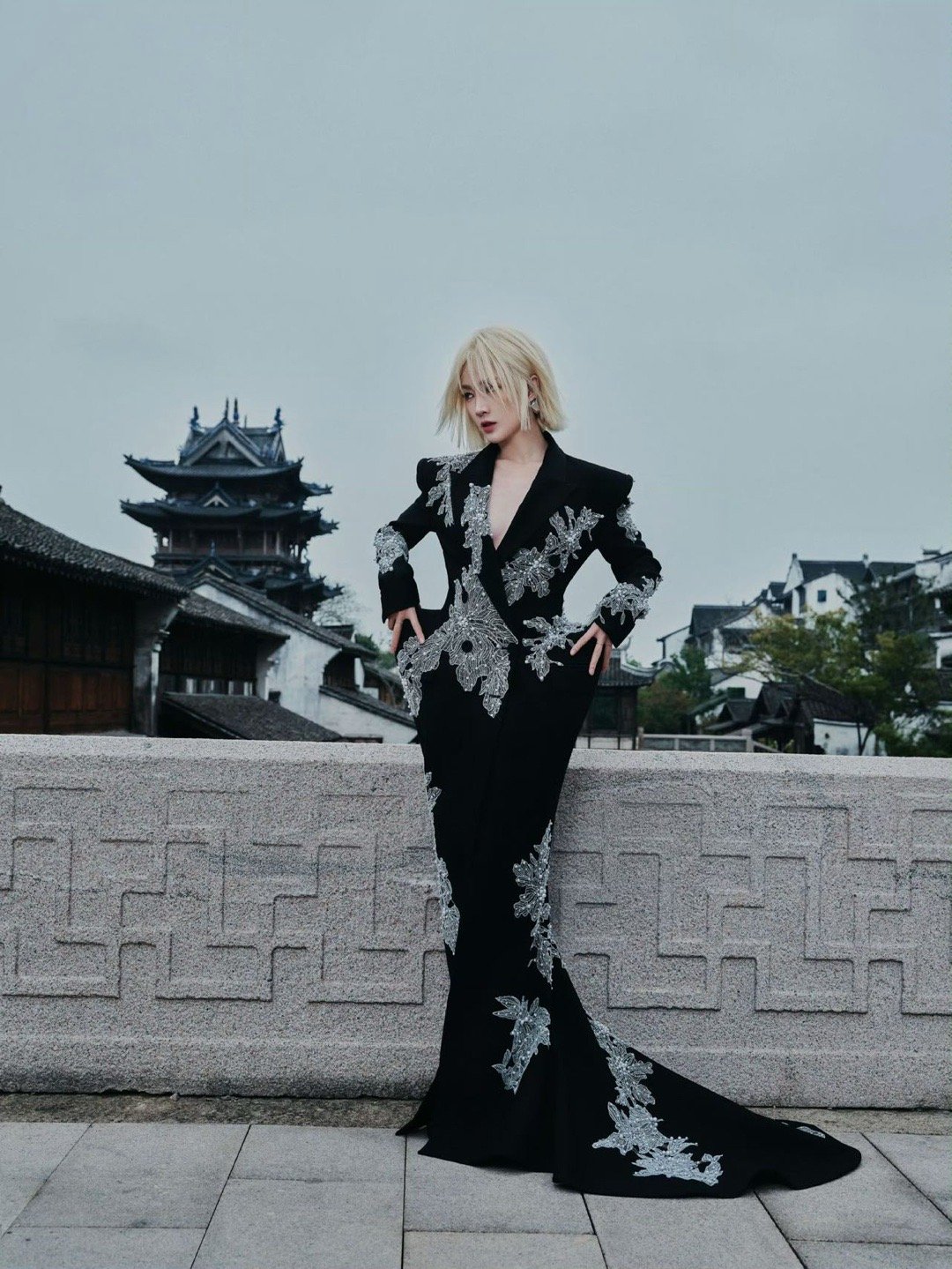 孟佳把深V穿成了小V 在最新出发图中,孟佳以重新解构的深V造型亮相。冷冽妆容与古朴背景形成强烈视觉反差~
