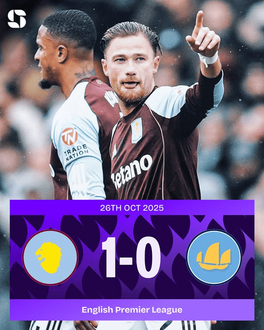 虎扑10月27日讯英超联赛,阿斯顿维拉1-0击败曼城。