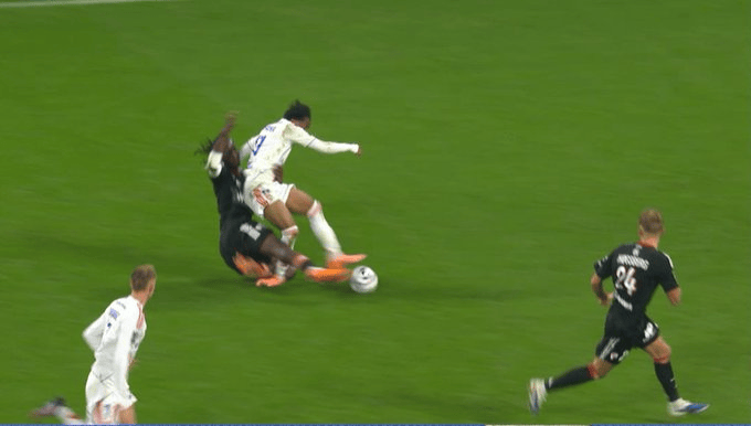 第66分钟,斯特拉斯堡中卫杜库雷背后铲倒马利克-福法纳,VAR审核后直红下场。