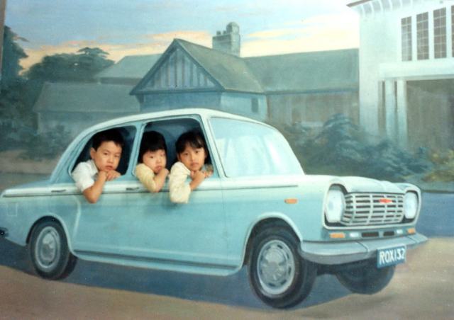更吸引顾客的是照相馆的立体道具。照相馆里,有一条漂亮的大红鲤鱼,小孩子可以骑上去;有一台小轿车,人躲在车子后面,把头伸到窗外来;还有当时很稀罕的摩托车,按一比一比例做成,年轻小伙都喜欢骑上去拍一张过把瘾。那一代的孩子,几乎都要坐上正在“跳跃”的大鲤鱼上拍一张,寄托着父母对“鲤鱼跳龙门”的希望;摩托车和小轿车更是那一代人梦寐以求的美好理想。