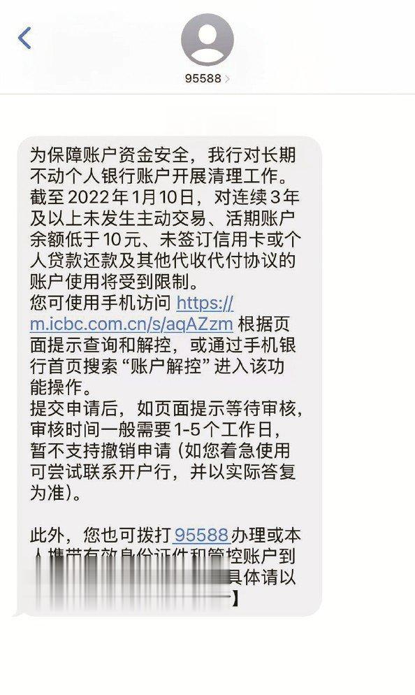 “为保障账户资金安全,我行对长期不动个人银行账户开展清理工作。截至2022年1月10日,对连续3年及以上未发生主动交易、活期账户余额低于10元、未签订信用卡或个人贷款还款及其他代收代付协议的账户限制使用。”工商银行的工作人员告诉记者,工行对长期不动户会暂停部分功能使用,并非直接销户,如果客户要恢复相关功能需在线上或到柜台进行账户解控。