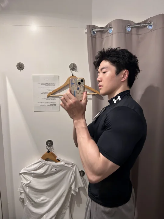 来日本旅行 当然得试试日本的安德玛(bushi 毕竟每个国家都有独有款式 但是明明试的码和国内一样 为啥感觉日本的会更紧… 是整体偏小一点吗? 穿大一码才和国内的感觉差不多 没穿过这种高领的(脖子不够长😭 但是黑色款好像不错 白色实在是太透了!!!