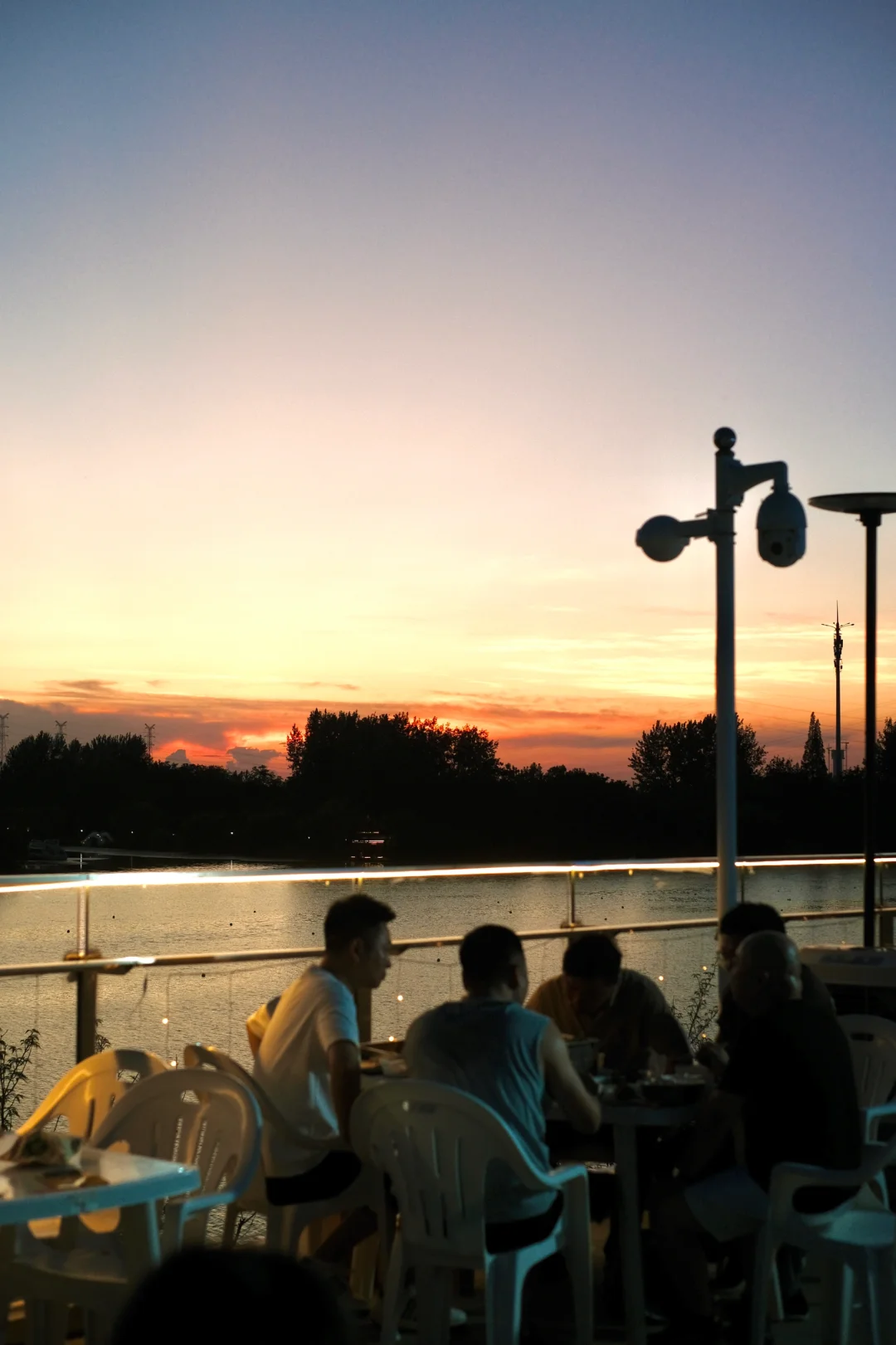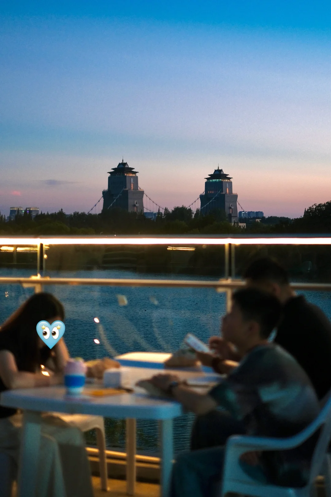 在日落与蓝调时刻的万福大桥旁,吃烧烤喝啤酒听live,好chill!