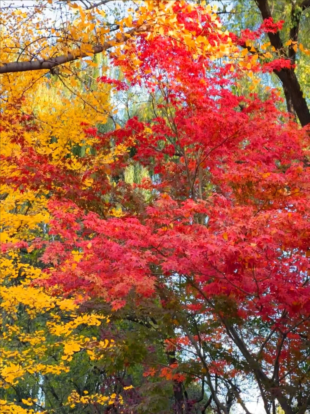 每年的网红机位,红色枫叶灰色白色在一起永远的神,今年也是红的一塌糊涂,没事溜达下看看