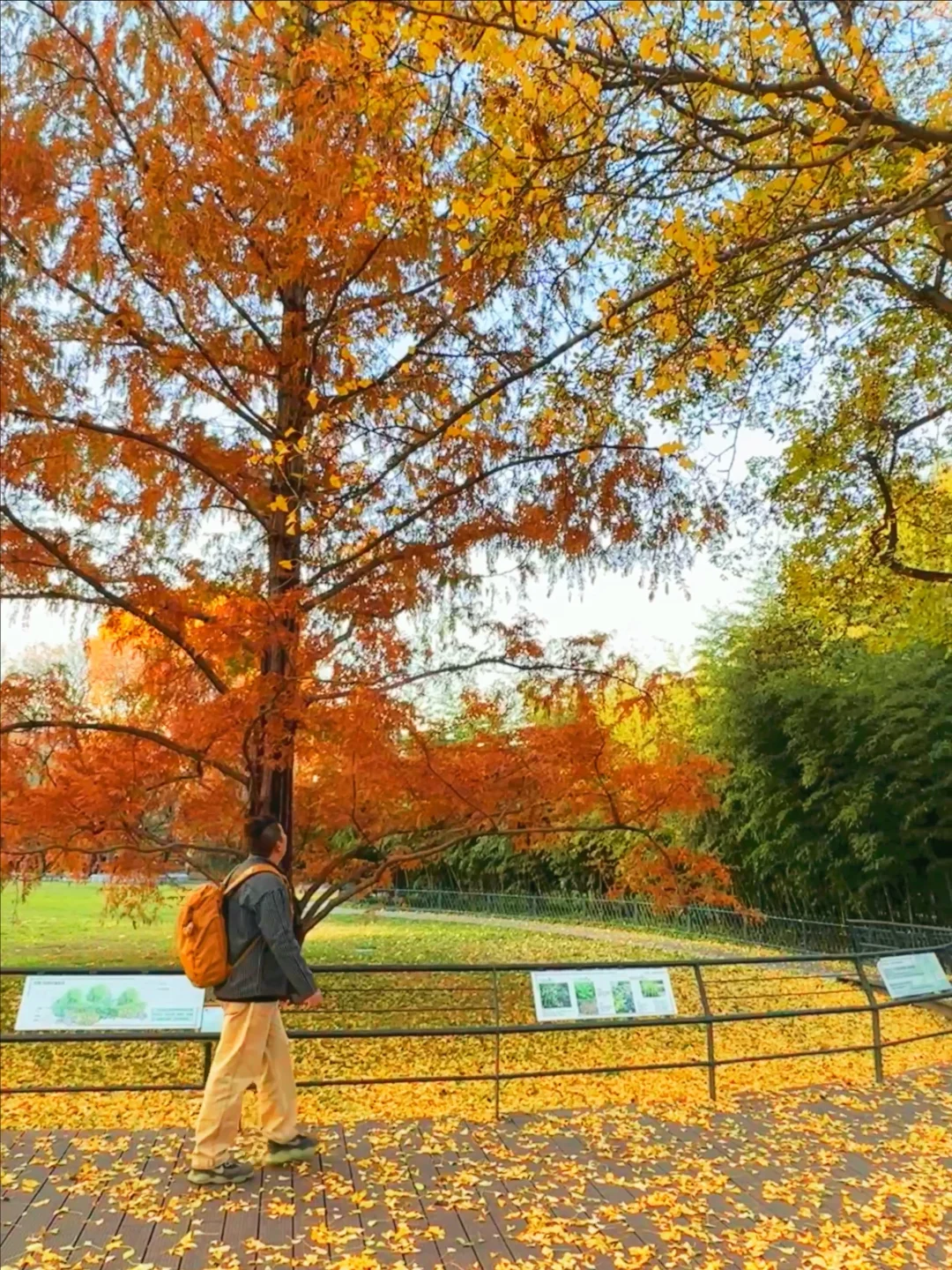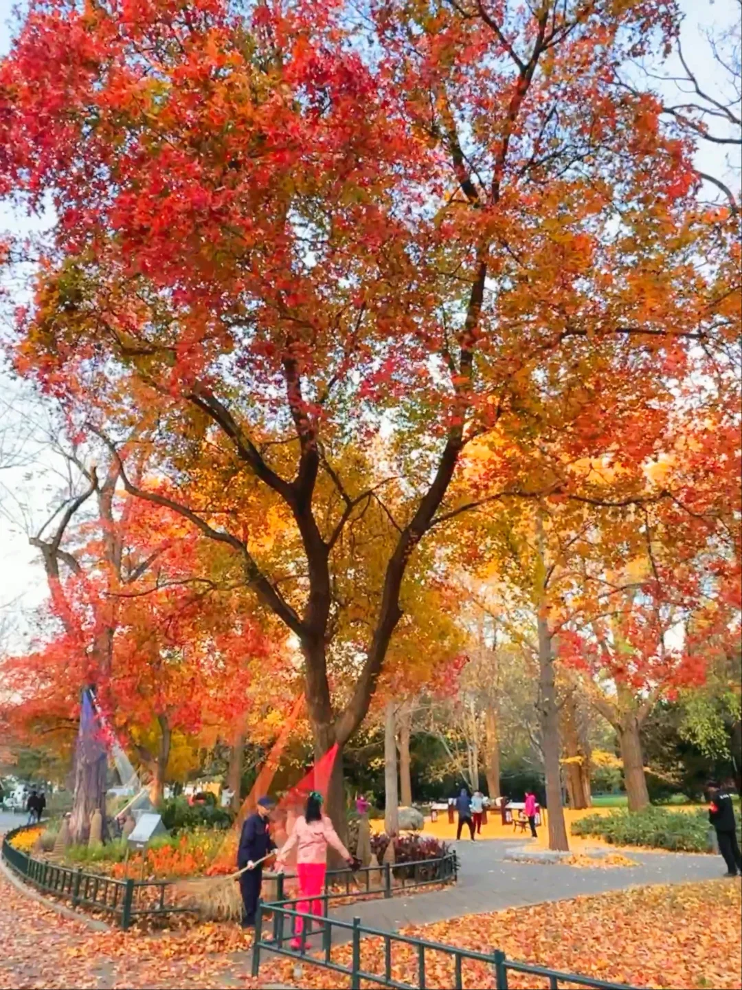 东门进去不远贼大一株银杏树,这个秋尾声落叶🍂厚厚一层,红枫正是美丽的季节,往前走就是一课超大水杉一定要拍