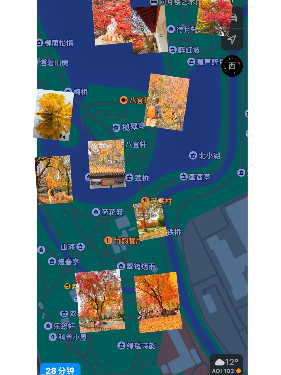 紫竹院东门👉绿毯诗韵👉紫竹文创商店👉稻香村河边 👉 南小湖(荷花池)👉八宜轩👉揽翠亭👉问月楼