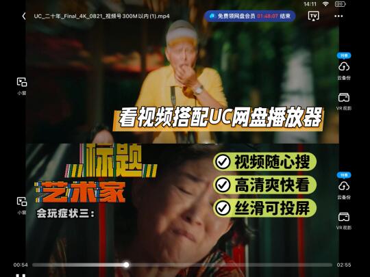 [拔草R]看完小说偶尔想找点视频看,都不用切换其他软件,用自带的UC网盘播放器看视频,播放丝滑不卡顿,画面高清;宅家窝在沙发还可以大屏投放,爽度值拉满!
