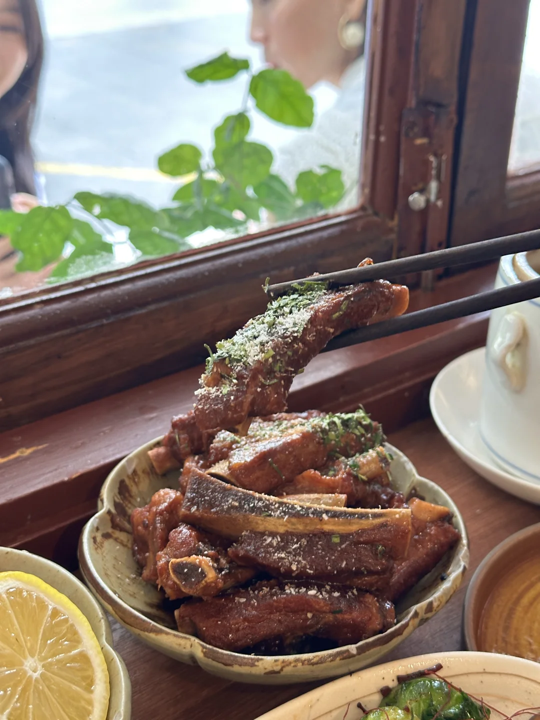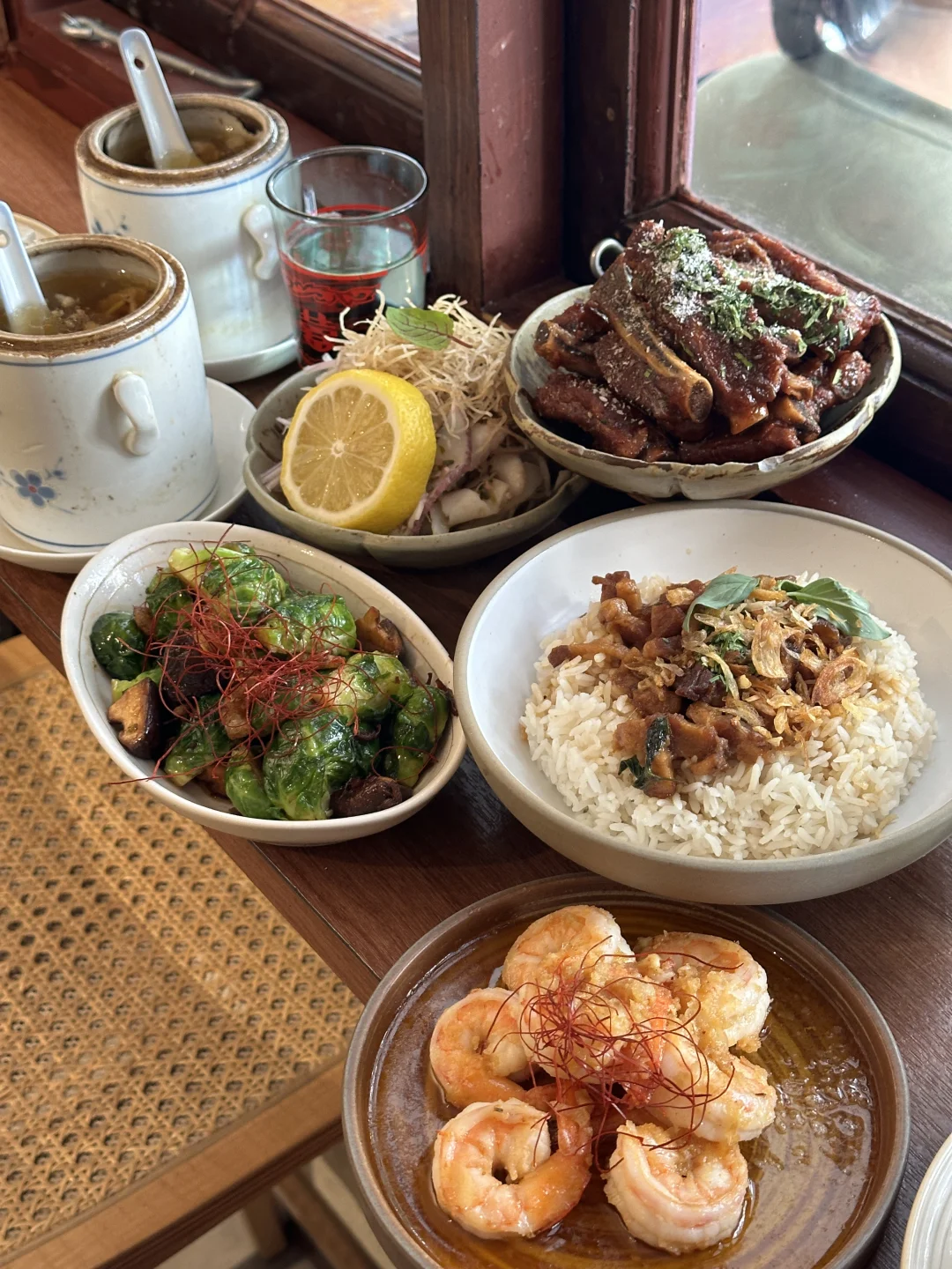 和朋友吃过好多次的私房菜 奶油原木风的装修 小而精致 价格合理 出品也很在线 是工作日中午也是座无虚席的那种好吃 话梅排骨、炖猪肉汤、九层塔卤肉饭 是广东宝宝从小吃到大的口味