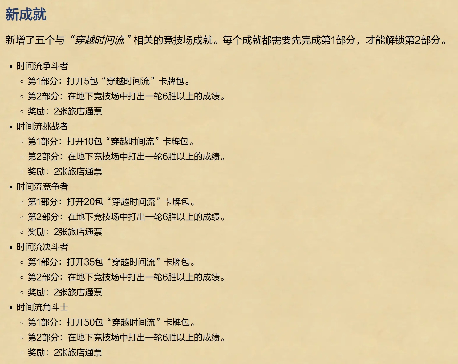 炉石传说 明日竞技场也将更新,卡池将轮换,地上和地下竞技场都可以白嫖门票(地上打到1负,地下打到2负),一共可以嫖3张门票! 增加了5个竞技场的成就奖励,共可获得10张旅店通票。