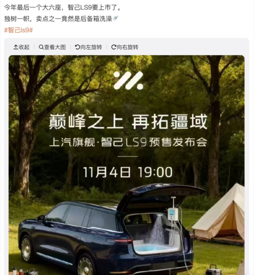 智己新车,大旗舰LS9,卖点是洗澡???问了下官方,这图非官方行为,是别有用心的