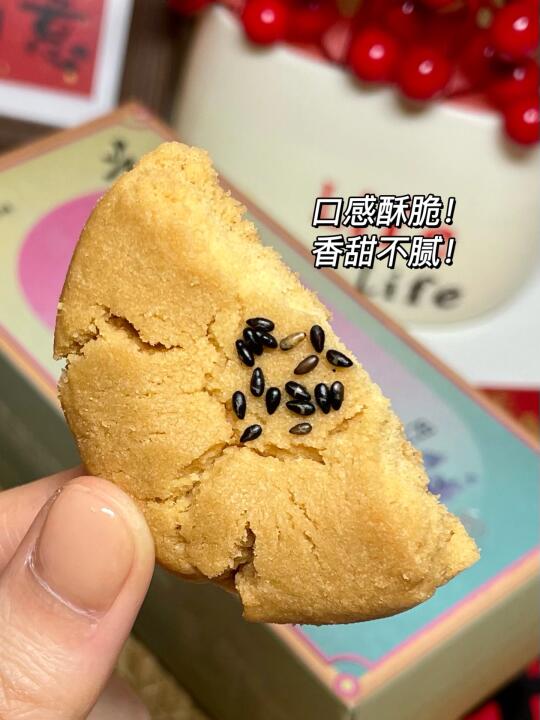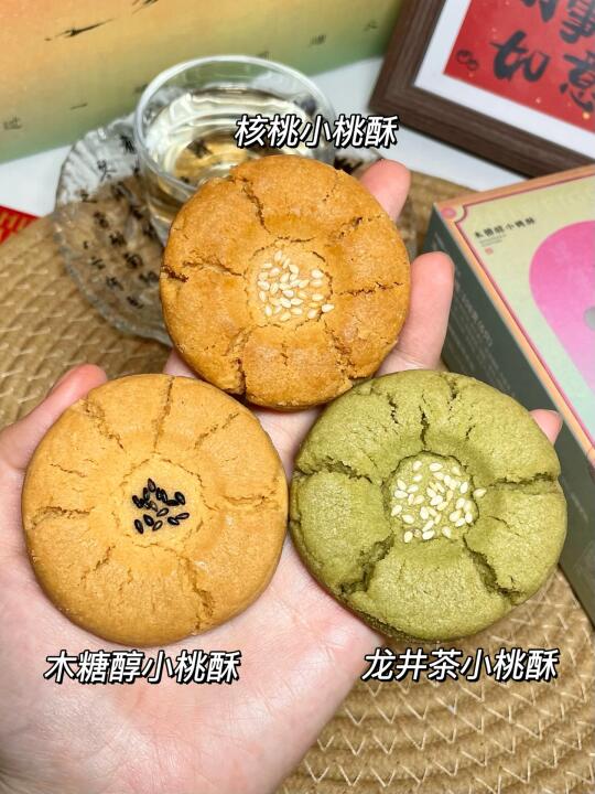 买回来被全家人夸了!!👏🏻👏🏻👏🏻 知味观的小桃酥简直太好吃了!! 三种口味的:核桃小桃酥/木糖醇小桃酥/龙井茶小桃酥 整体都是微甜的!一点都不会腻! 口感酥酥沙沙的!一口咬下去会掉渣的那种! 桃酥上面还有芝麻!满口醇香~百吃不腻! 我喜欢下午茶搭配一杯清茶🍵一起吃!太巴适了!口味香甜老少皆宜~很适合过年送家里长辈!