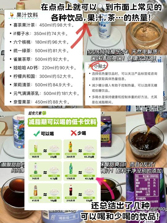 把市面常见的饮料热量都做了一个总结,还贴心的告知我们该如何去选择饮品!