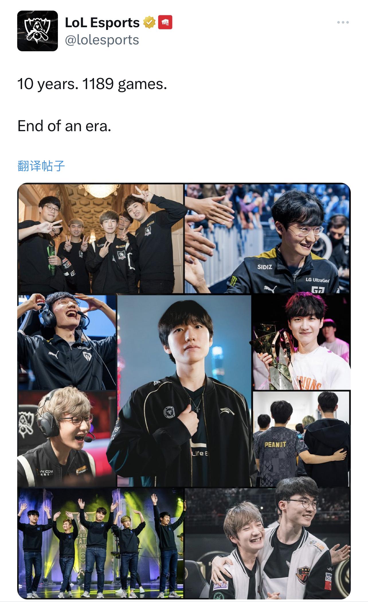 LOL官推晒Peanut历年照片:10年1189场比赛,一个时代的终结