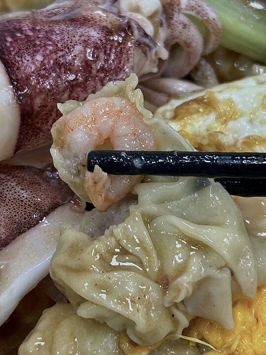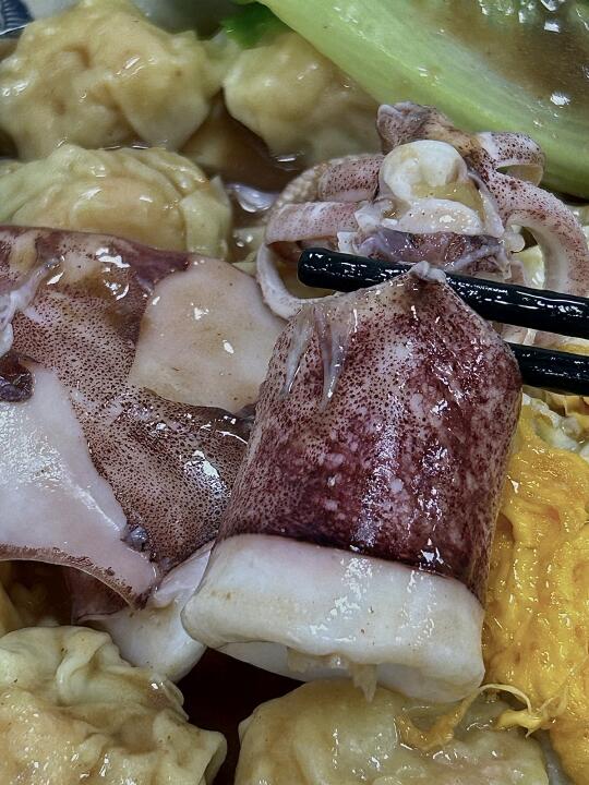 終於等到它裝修重開 辛苦一週好好犒勞自己頂配安排走起 魷魚鮮蝦雲吞干撈加腩汁精神 - 🔎 維叔食店 🦑 魷魚鮮蝦雲吞 -