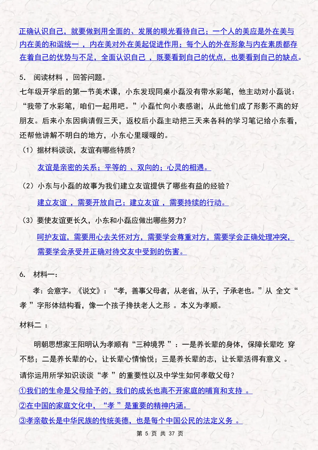七年级 七年级道法 初一道法 七年级上册道法 必考考点 道法材料题 道德与法治 家长收藏孩子受益 期末考试 提高孩子学习成绩