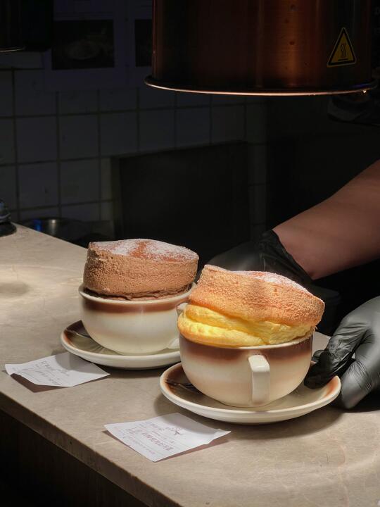 那就是吃这个超级DuangDuang的舒芙蕾!! 现点现烤!热fufu的好治愈❤️🩹 坠喜欢巧克力味儿的!巧克力味特别浓郁!