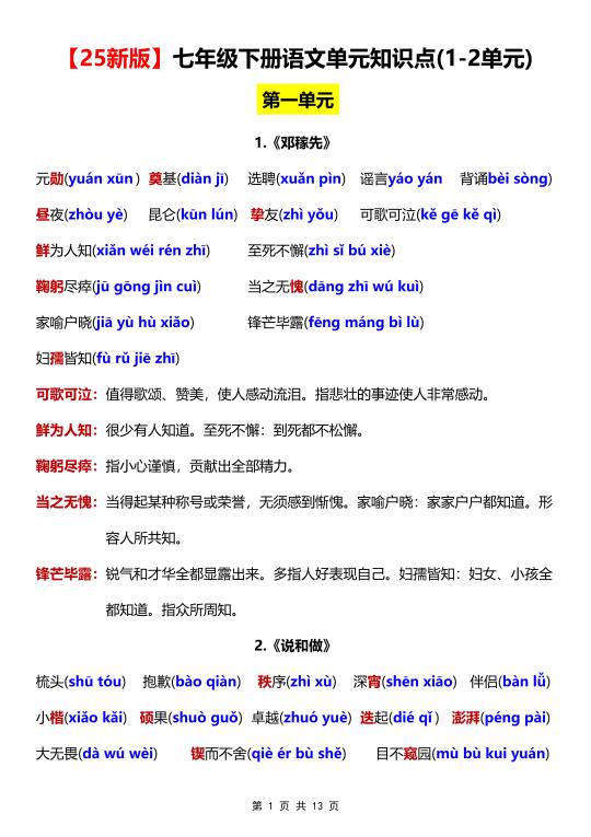 七年级 七年级下册语文 七下语文 语文知识点 知识点总结 寒假 家长收藏孩子受益 初一 陪读妈妈 辣妈育儿经