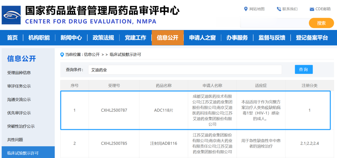 10月28日,国家药监局药品审评中心官网显示,艾迪药业(上交所代码:688488)自主研发的抗HIV领域1类新药ADC118片获准开展临床试验,适用于作为完整方案治疗人类免疫缺陷病毒1型(HIV-1)感染的成人。这是国产首个进入临床阶段的HIV整合酶抑制剂复方制剂,标志着我国在艾滋病创新药研发领域取得重大突破。