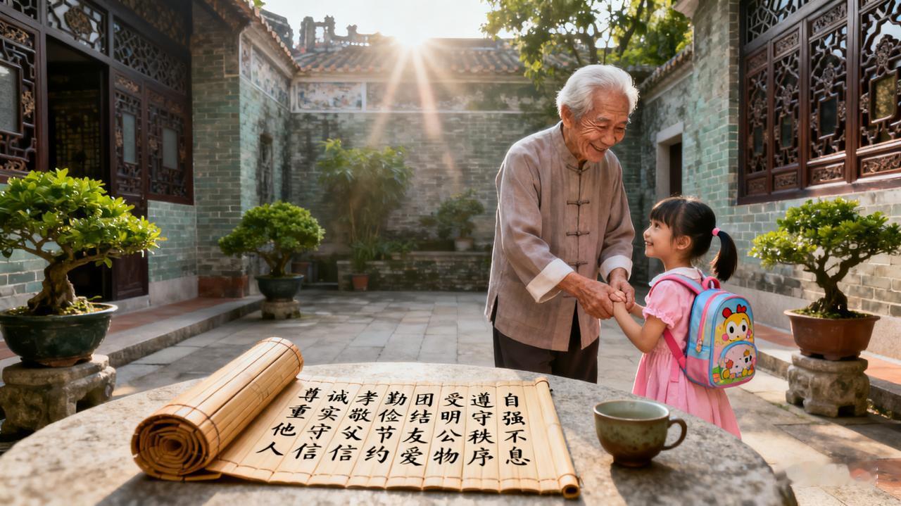 广东icon爷爷的育儿经:藏在9条规矩里的人生底线 近日,广东一位“icon爷爷”的育儿经火遍全网。孙女刚踏入幼儿园,爷爷便为她定下9条规矩,没有华丽辞藻,却因蕴含深刻哲理引发无数共鸣,更被网友关联“两广无拦婚车”的文明现象。 在广东,“有人生没人教”是最伤人的评价,这背后是岭南文化对家教的极致看重——家教是做人的根本底线。爷爷的9条规矩正是这份底线的生动诠释:尊重他人需常说“请”“谢谢”,诚实守信要做到言行一致,勤奋学习得不惧挫折,还要爱护环境、关心家人、自律自爱、勇敢沟通、乐于分享、担当责任 。 这些规矩看似朴素,实则藏着处世智慧。“不随意打扰他人”培养边界感,“答应的事要做到”塑造公信力,“懂得分享”传递共情力。正如网友所言,从小被教导尊重他人、不贪小利的孩子,长大后自然不会做出拦婚车索财的失礼行为,这正是家教浸润出的文明自觉。 没有高深理论,只用日常点滴引导,这位爷爷的育儿经印证了:最好的教育,是把“做人”的根本刻进成长里。在浮躁的当下,这份扎根传统的家教智慧,恰似清流,提醒着人们:真正的底气,永远来自刻在骨子里的教养与规矩。育儿经 育儿八句话