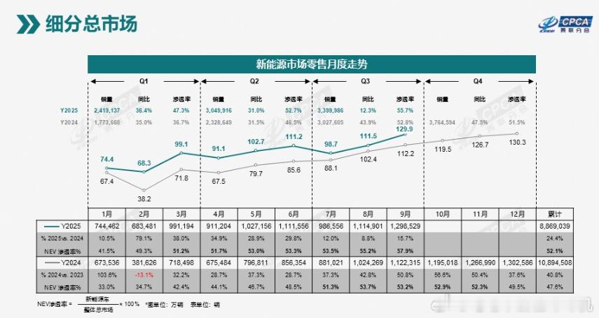 目前来看,新能源车渗透率整体在曲折上升,9月份达到今年最高点,全国每卖出100辆汽车,就有58辆是新能源车。