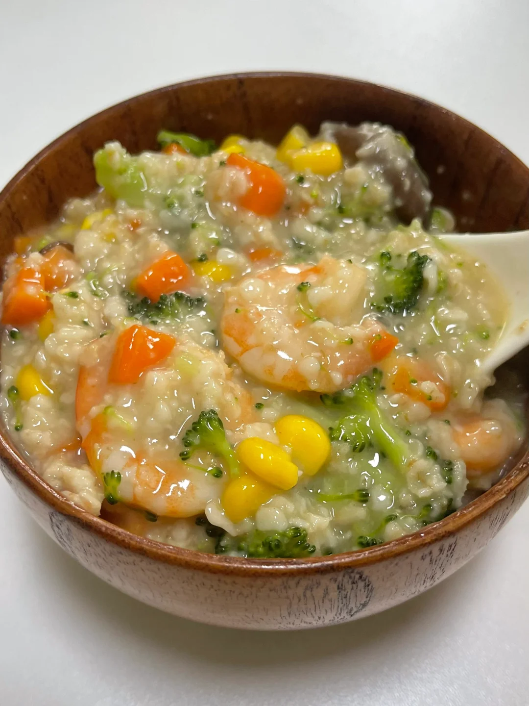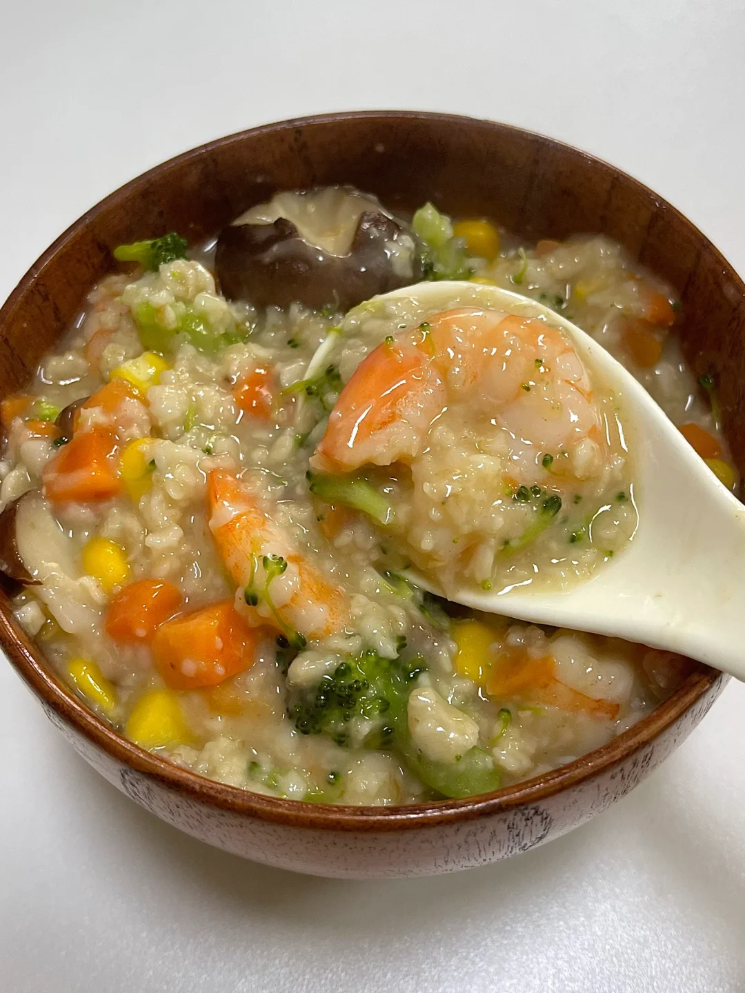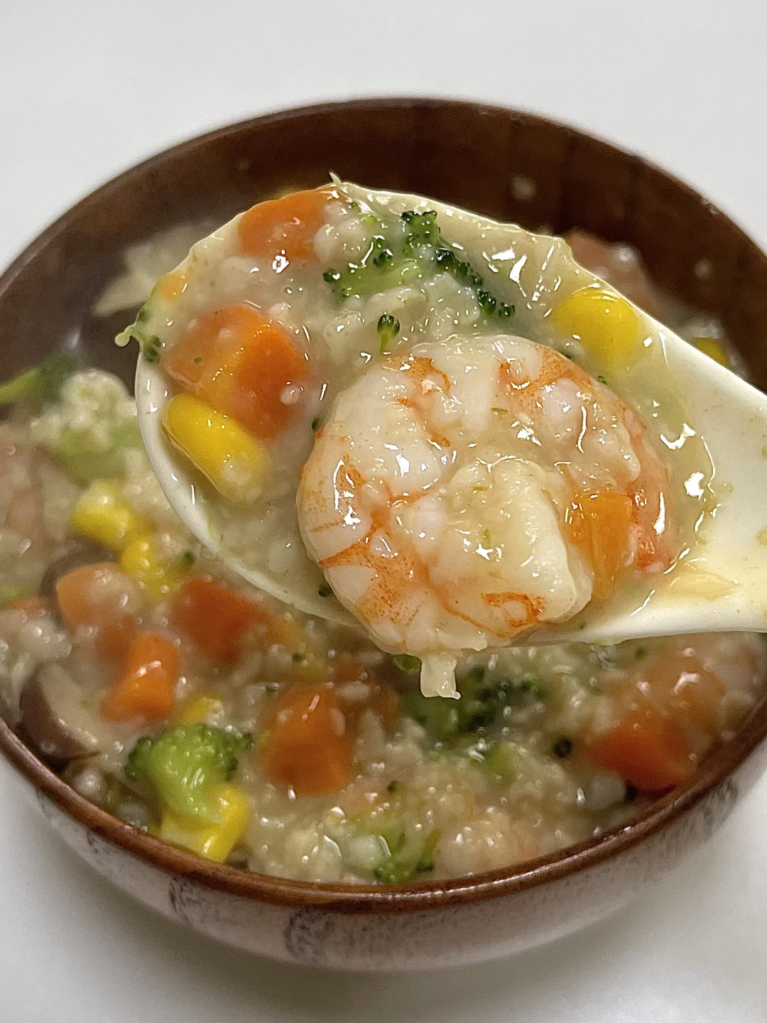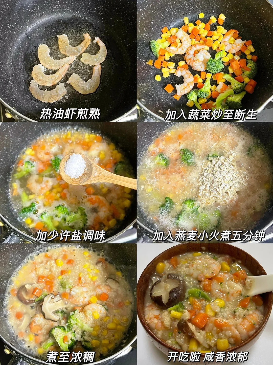 无米虾仁时蔬粥…也太绝了吧!! 超鲜甜!!巨好吃!食材丰富还营养 几分钟就可以搞定 低脂低卡还饱腹!减脂期放心吃~!! 步骤如图⬆️