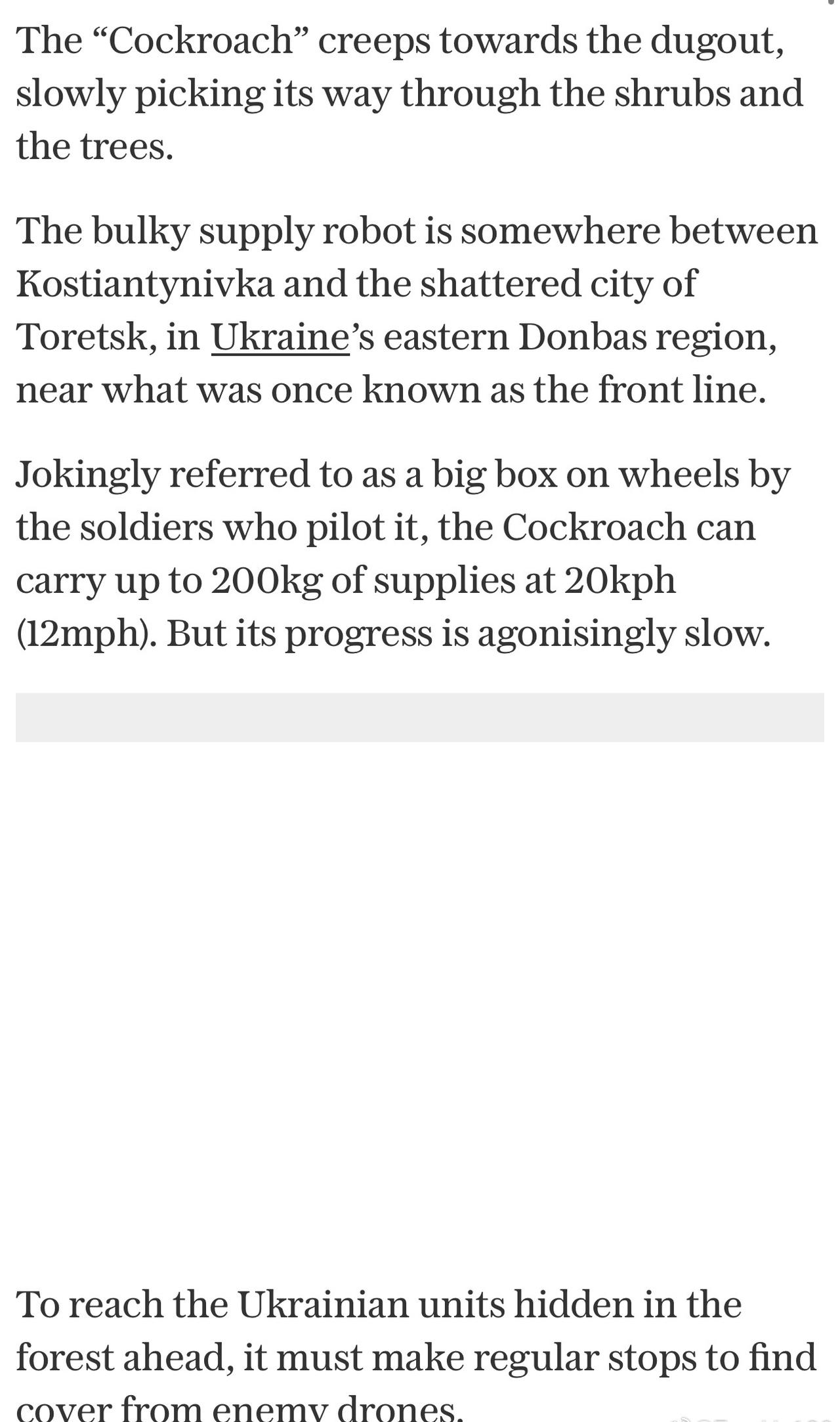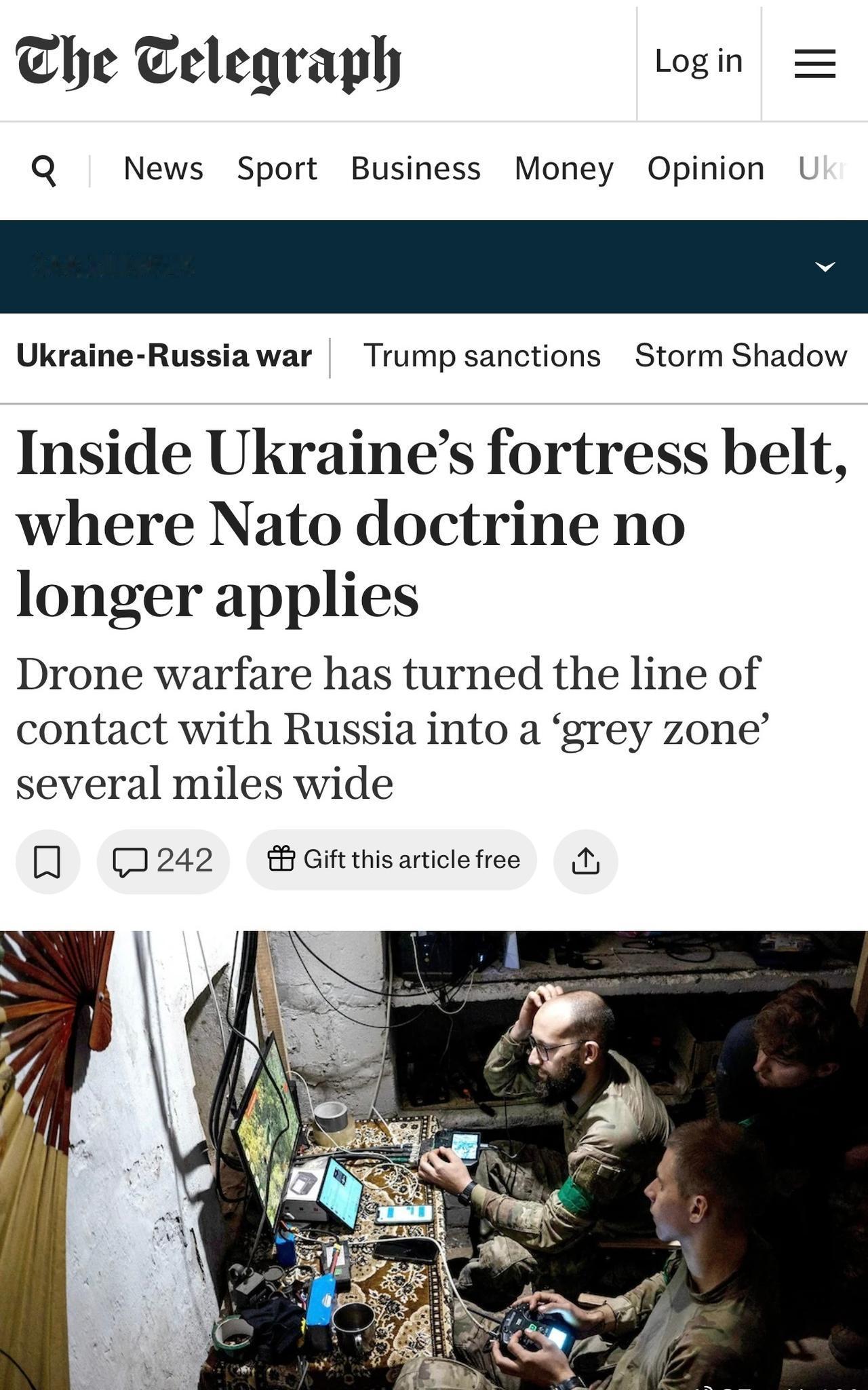 《每日電訊報》:烏克蘭頓巴斯的「要塞地帶」阻擋了俄羅斯的推進。 俄軍未能攻下Kostiantynivka科斯蒂安特尼夫卡,也未能推進到波克羅夫斯克附近。 同時,無人機戰爭改變了北約的規則——鋼筋網、反無人機網和自製裝甲取代了戰壕。 「科技已經徹底顛覆了舊的戰爭規則,」Phoenix團的一名士兵說。 無人機如今已成為前線的主宰——它們不停地進行狩獵、偵察、打擊和干擾。生存取決於速度、掩護和靜默。 俄羅斯改變策略:瞄準後勤保障。 目標——史上首次無人機圍攻。烏克蘭調整策略,將基地向更深處轉移,加固補給線,並用網子掩蓋所有行動。 每次前往前線都充滿風險。窗戶的一道閃光、緩慢的轉彎、錯過偽裝——無人機就會鎖定目標。 黎明和黃昏是唯一安全的時間,此時光學系統變得模糊,夜間感測器開始切換。 如今烏克蘭國防移動化、數位化和控股化。