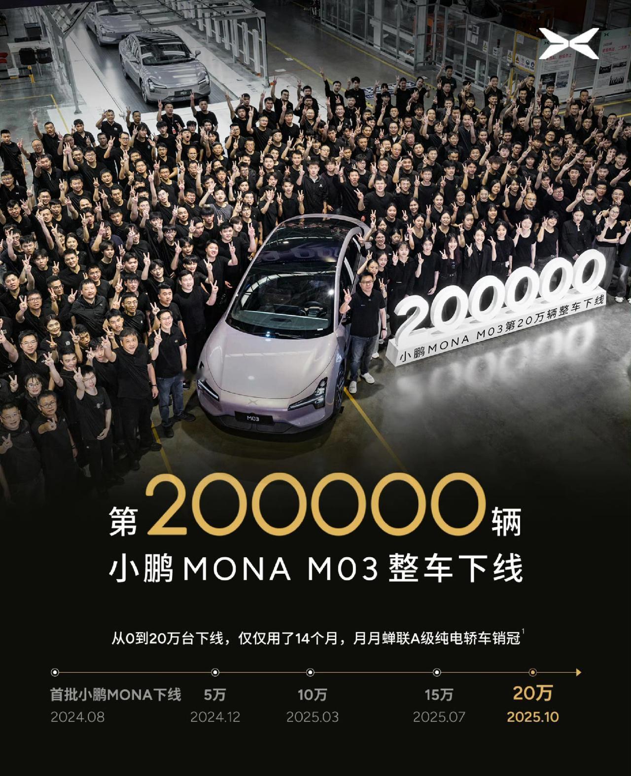 孙少军:小鹏03突破20万辆!小鹏汽车的真正翻身之作! 而且随着时间的延续,这款车卖得越来越多,最近三个月更是干出了5万辆的成绩,说明消费者特别喜欢这款车在不停的下单。 小鹏的低价车策略成功了,此前小鹏一直把自己当做是中国的特斯拉,在产品上也与特斯拉对标,后来发现转变一下思维结果车型更好卖。 各位是怎么看的?欢迎评论区留言。