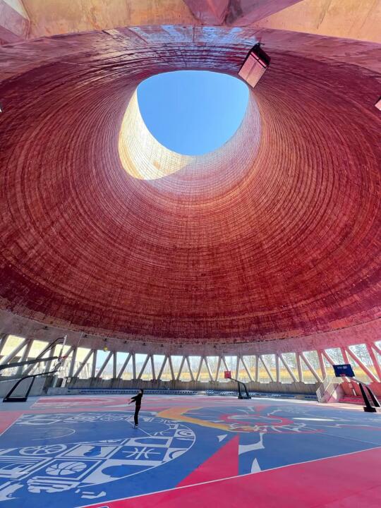 居然能把工业风与篮球氛围融合,超大天窗,高耸的冷却塔做背景,酷炫工业大片直接霸屏了
