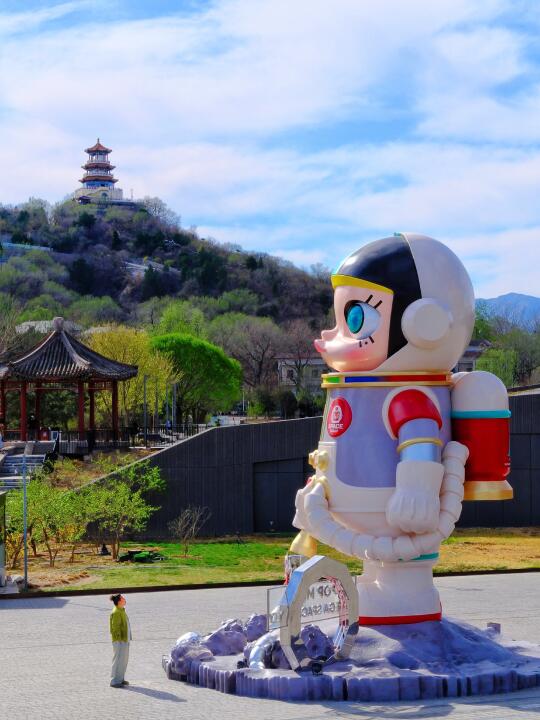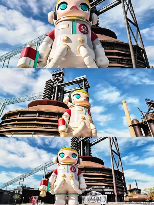 首钢新地标王者,是工业记忆与潮玩艺术的碰撞,在三高炉遗址前,高达9米的SPACE MOLLY“地球女儿”巨型装置正式揭幕,带好大儿来见巨型好大儿啦