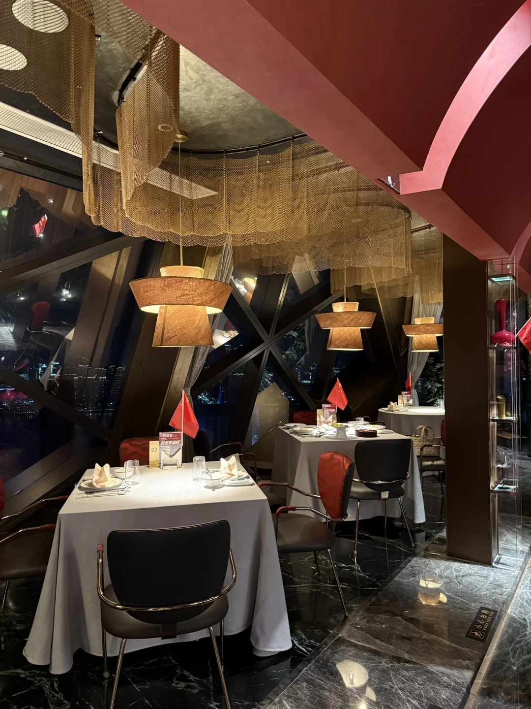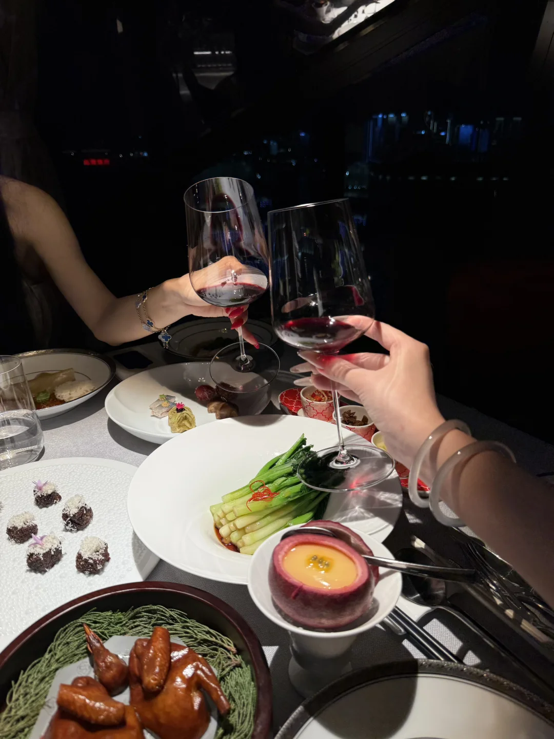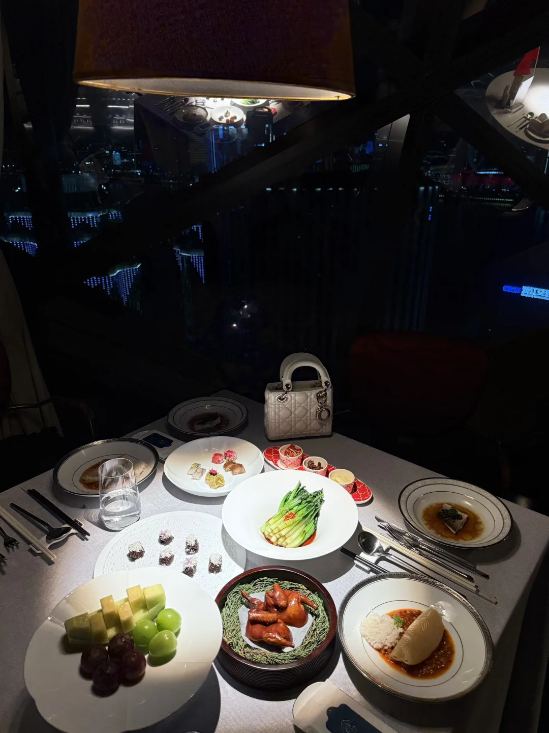 一进门就被这个艺术装置惊艳了 真的很美~后面大屏画面也不错 高空餐厅很适合看夜景 可以俯瞰钱江CBD 乳鸽鲜嫩多汁 💕菜脯花胶蛮入味的 梅菜马友鱼很很鲜美嫩滑 最后百香果布丁🍮收尾清爽解腻🥰 📍云顶玺宴