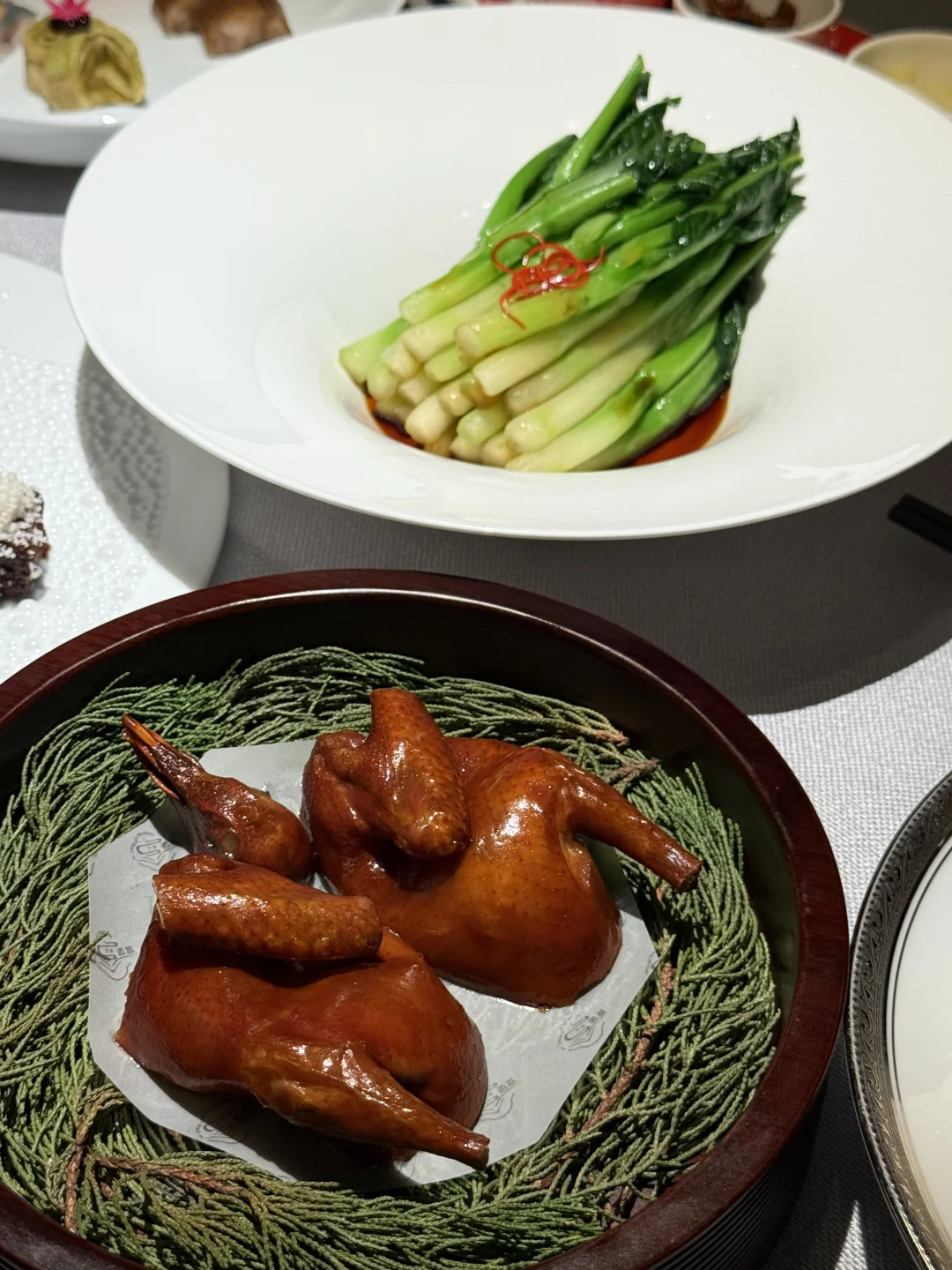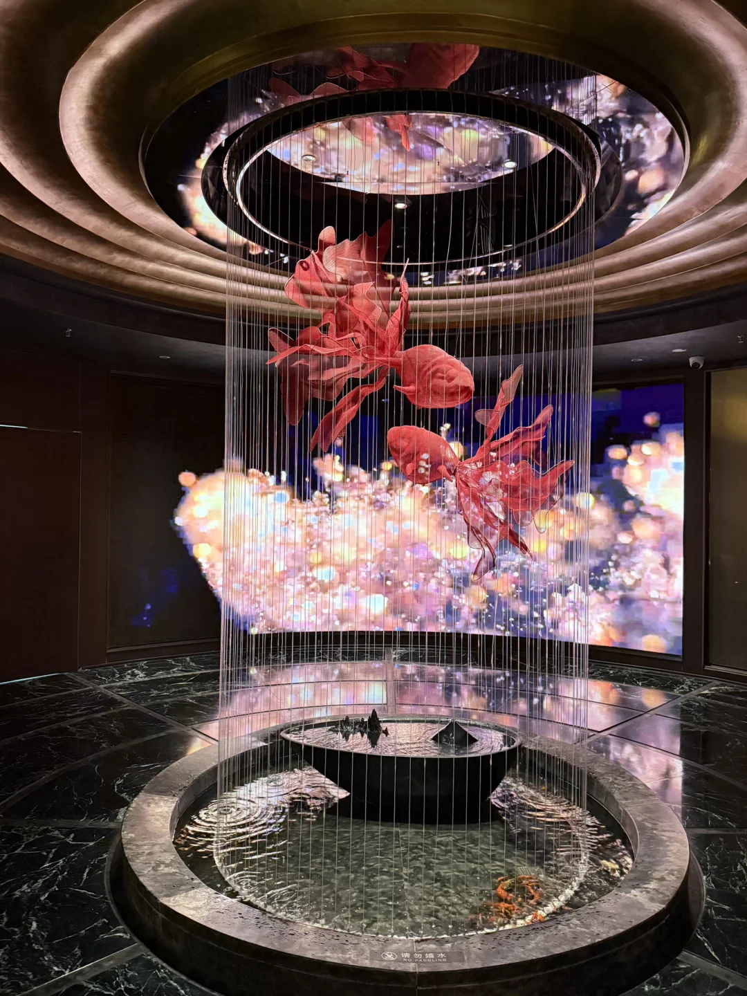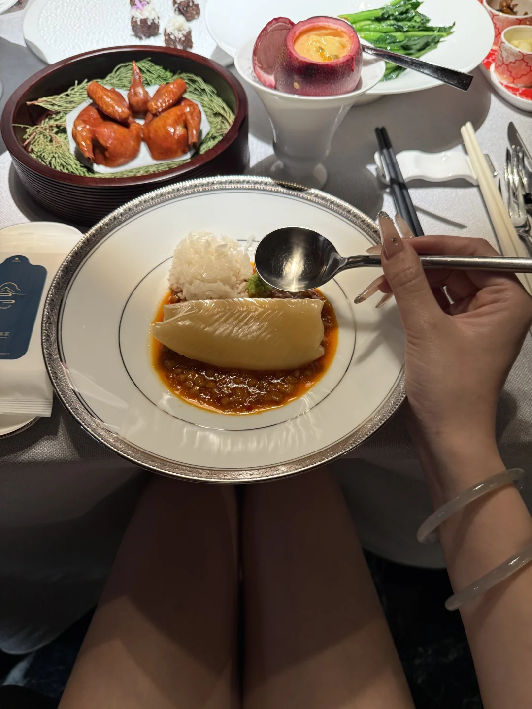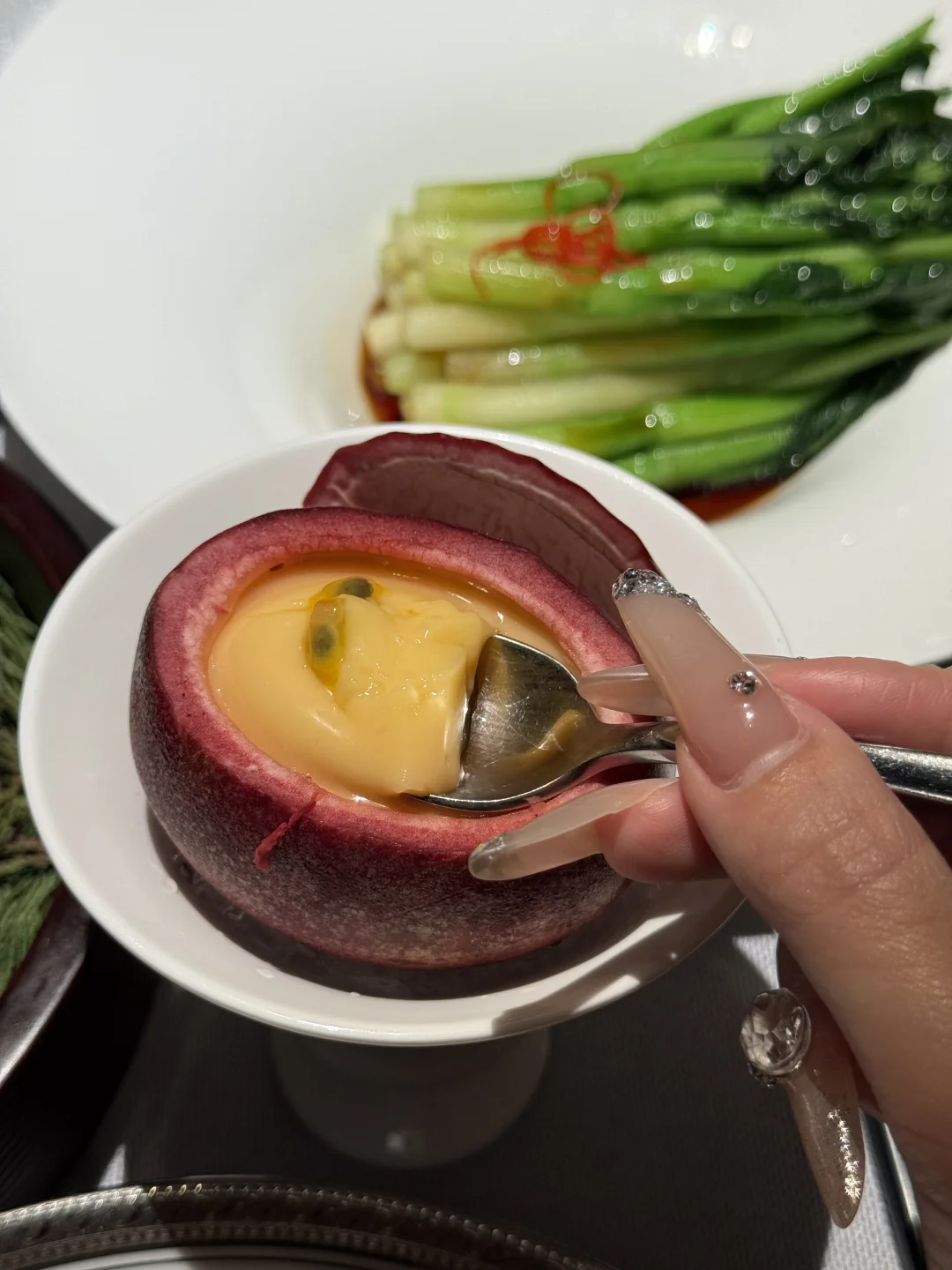 一进门就被这个艺术装置惊艳了 真的很美~后面大屏画面也不错 高空餐厅很适合看夜景 可以俯瞰钱江CBD 乳鸽鲜嫩多汁 💕菜脯花胶蛮入味的 梅菜马友鱼很很鲜美嫩滑 最后百香果布丁🍮收尾清爽解腻🥰 📍云顶玺宴