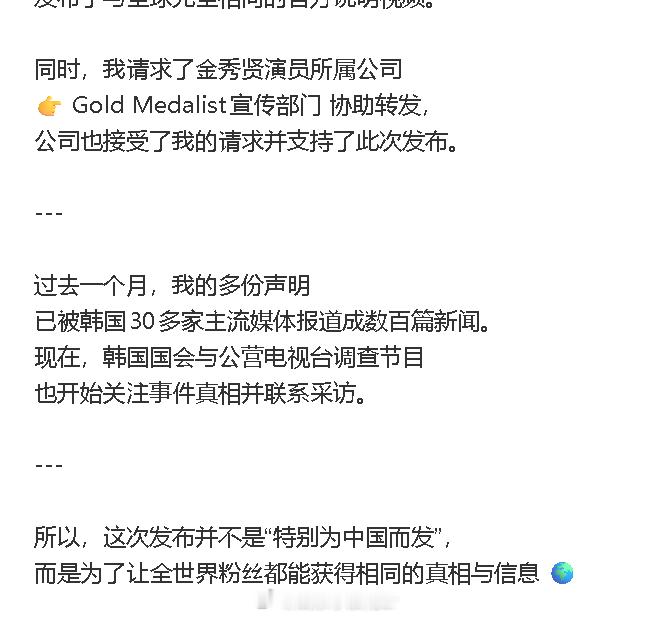 金秀贤律师回应微博发声 金秀贤律师回应今天在微博的发声:并不是“特别为中国而发”,而是为了让全世界粉丝都能获得相同的真相与信息。